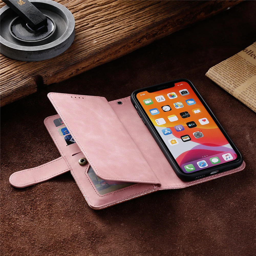 Кожаный чехол-кошелек на молнии для iPhone 12 Mini 11 Pro XS Max, ретро-чехол для телефона iP XR X SE 2020 6 6s 7 8 Plus, чехол-подставка для карт