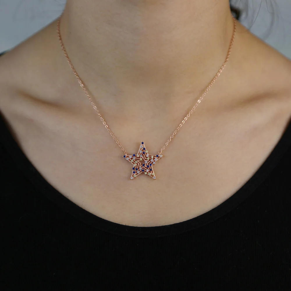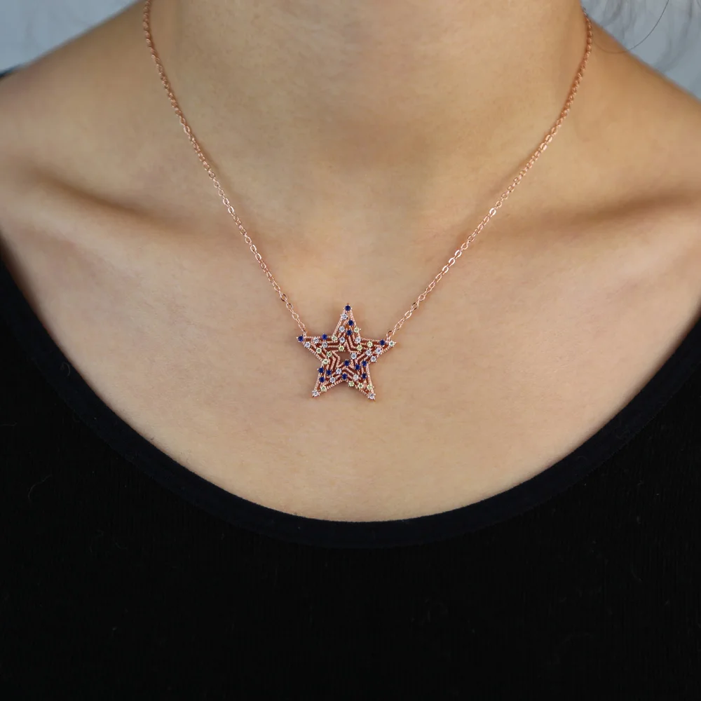 Модное ожерелье-чокер со звездой для женщин, элегантное очаровательное женское ожерелье с подвеской из розового золота, романтические подарки для девушек