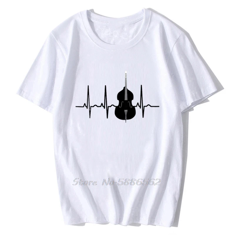 Футболка мужская с коротким рукавом, модная смешная хлопковая рубашка с надписью Double Bass и изображением сердцебиения, музыкальных джазовых инструментов в стиле Харадзюку, унисекс
