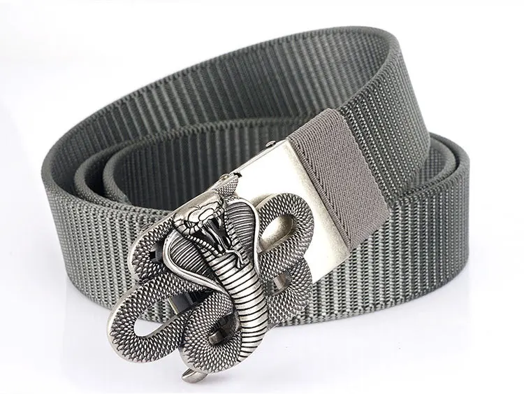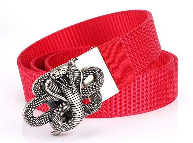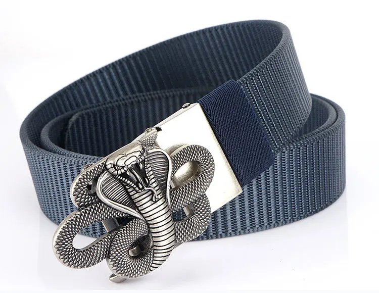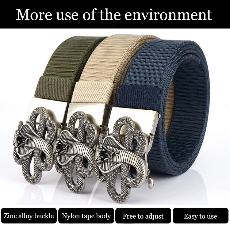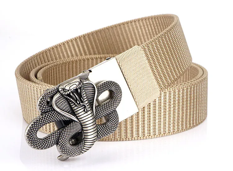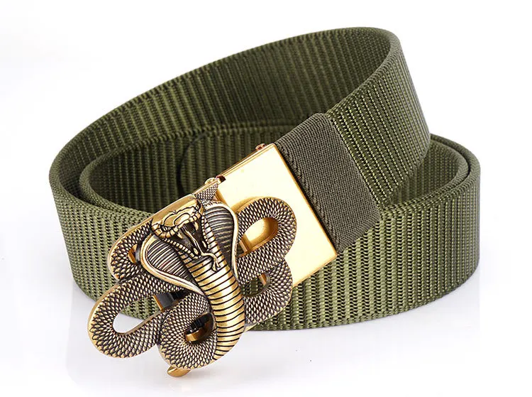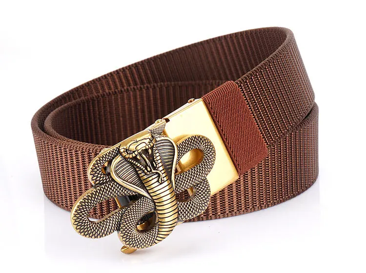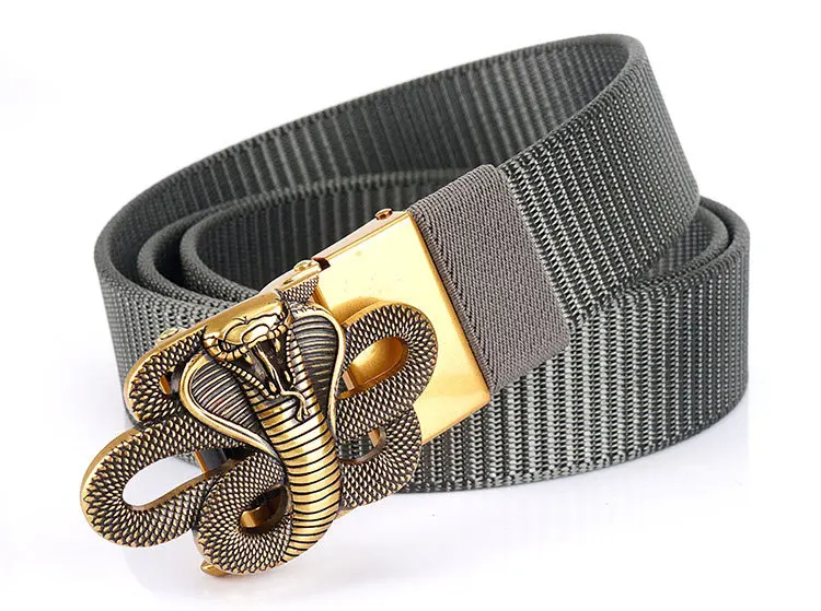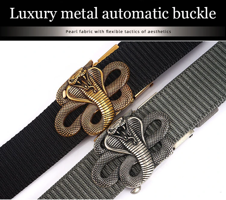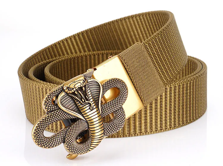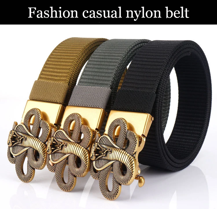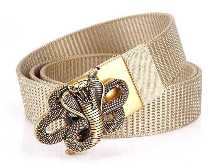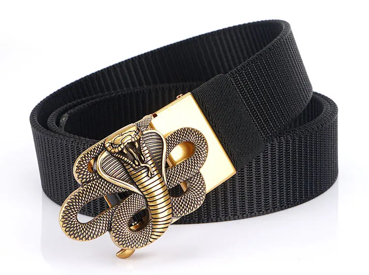 SupSindy Мужской нейлоновый ремень, роскошная золотая кобра, металлическая автоматическая пряжка, парусиновые ремни для мужчин, модный джинсовый пояс, черный мужской ремешок