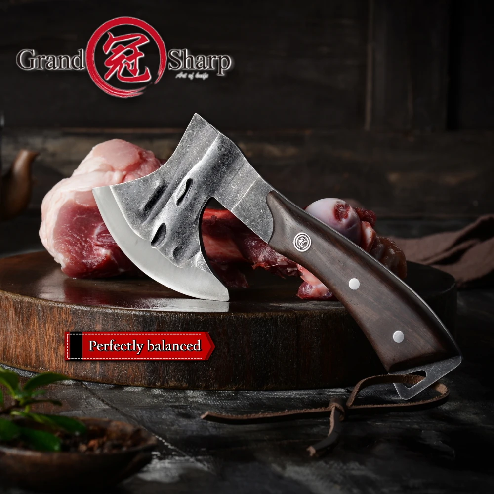 Топор кованый ручной работы, кованый нож шеф-повара, топорик для огня, приспособление для кемпинга, рыбалки, дома, сада, кухни, измельчения костей