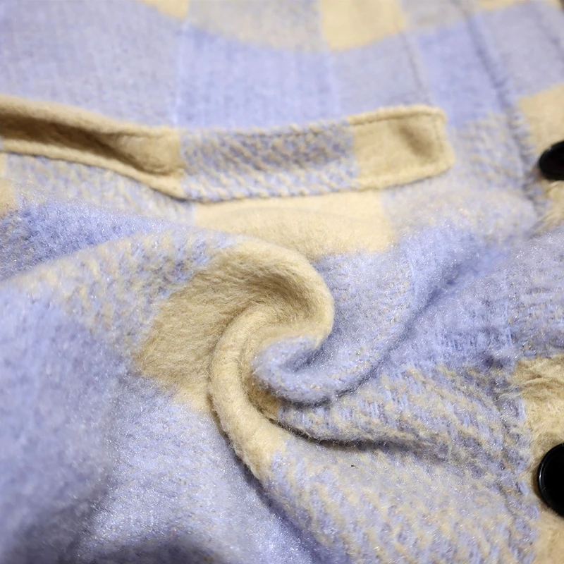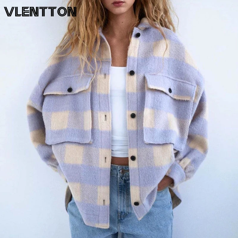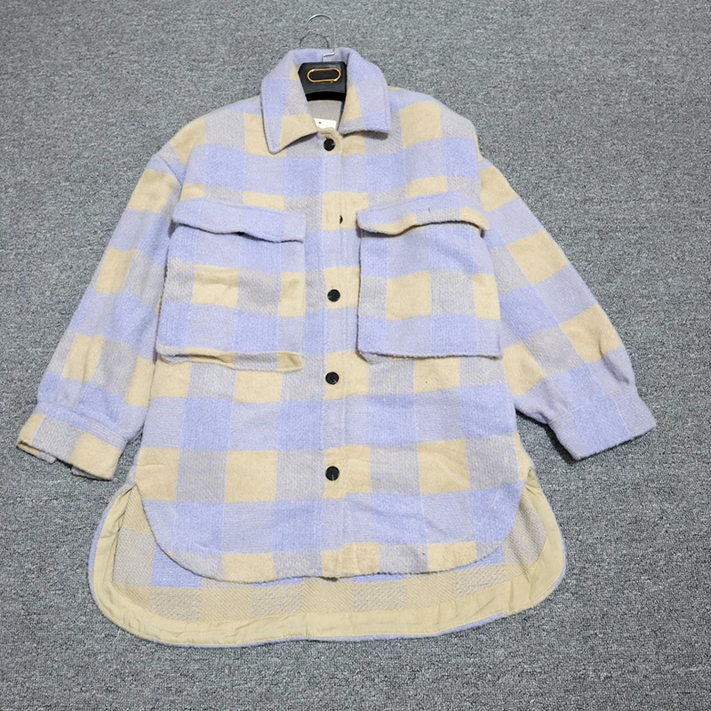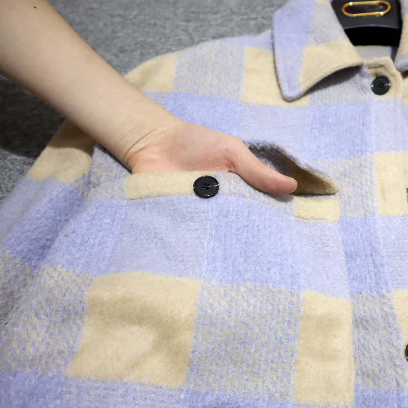 Куртка женская осенне-зимняя, клетчатая, большого размера, с карманами, шерстяные футболки