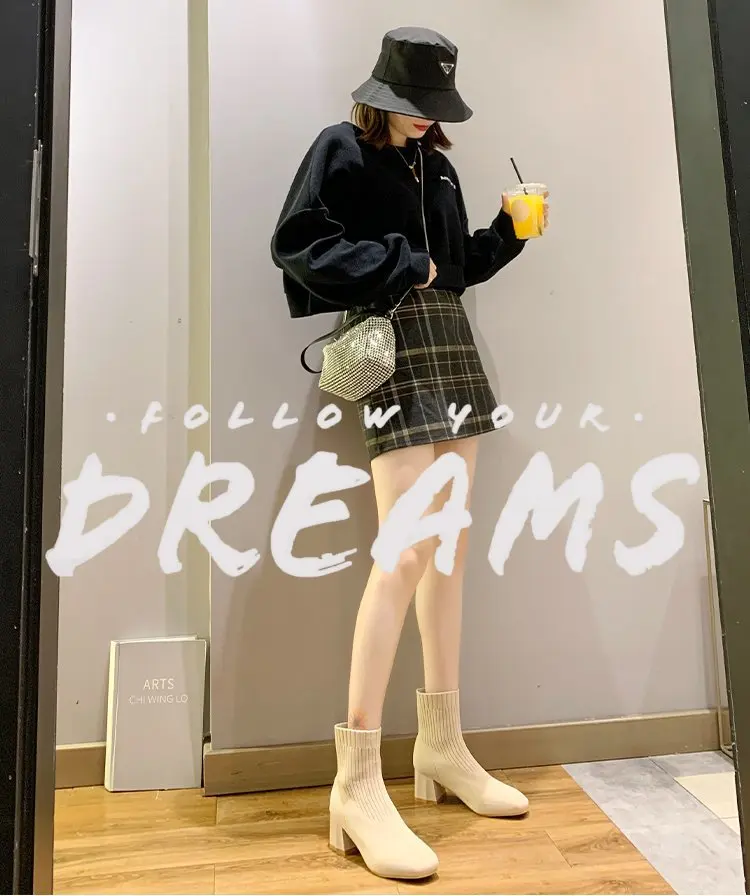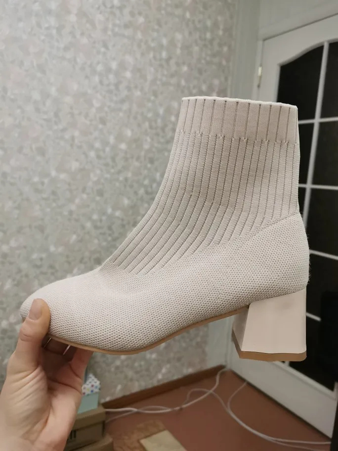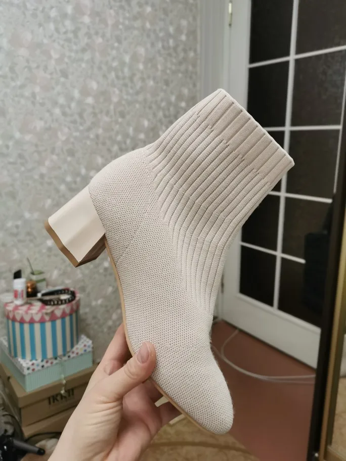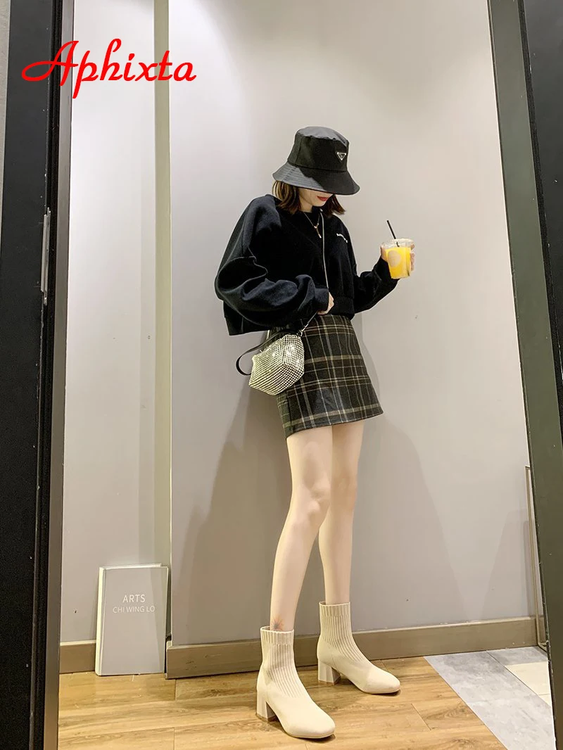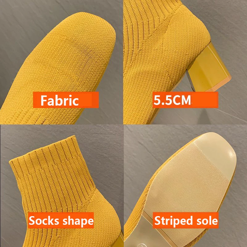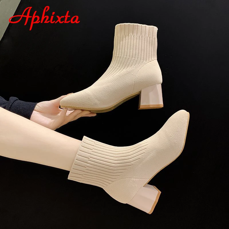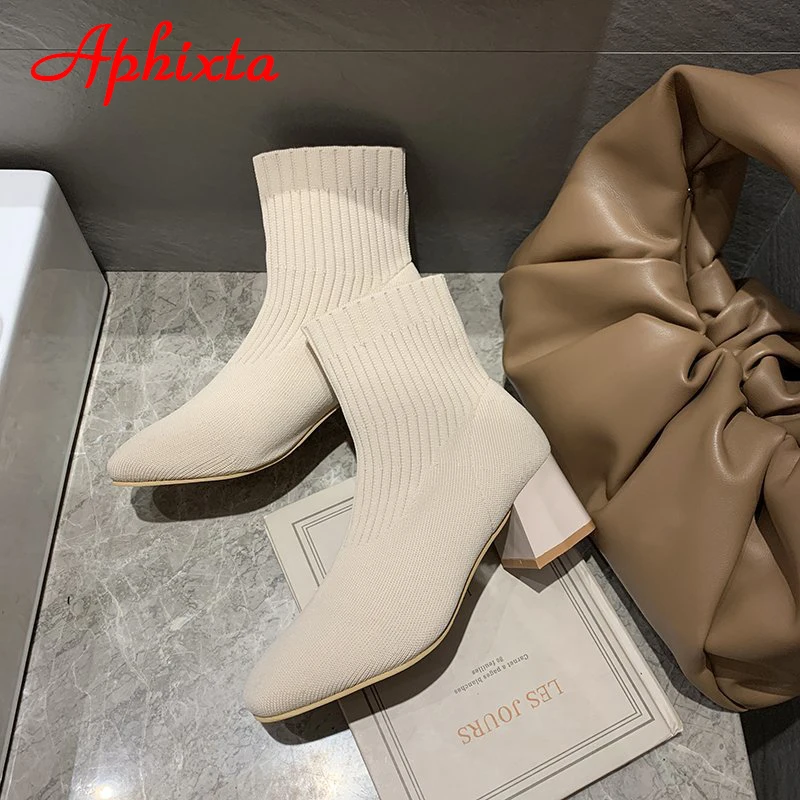 Женские сапоги-носок Aphixta, из эластичной ткани, с квадратным каблуком 5,5 см, вязаная обувь желтого цвета, хлопковые сапоги, женская обувь