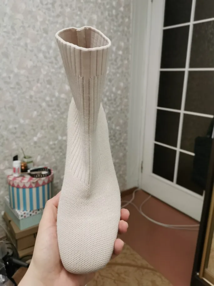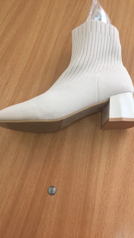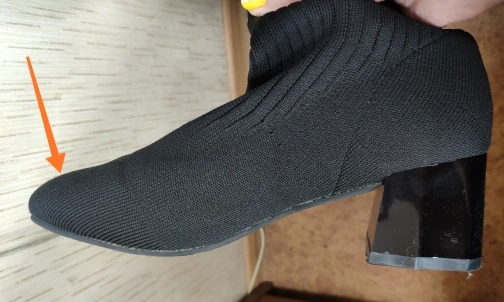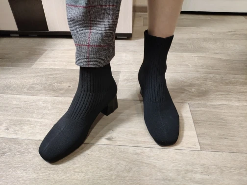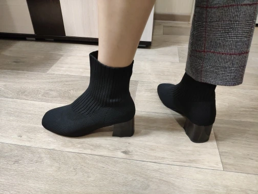 Ботильоны понравились. Удобная колодка, нога не вихляется. Надеваются легко. Подъем ботинки держат хорошо, нога вперёд не уползает. Но они не сказать, что тянутся. Нижняя часть ботинка ("туфелька") проклеена слоем плотной, как тонкий войлок, ткани. А носок и пятка - двойным слоем. Так что и форму держат, и при наличии косточки давить могут и не дышат почти (в помещении чувствую влагу в них, хотя сама нога сухая - конденсат). Я на ногу 23,5 см рискнула заказать 38 размер и не прогадала. В носке́ у меня, конечно, остался почти сантиметр свободного пространство, но поскольку нос сужается к подошве (фото 5), в этот сантиметр нормальному пальцу никак не попасть. Зато на ноготь большого пальца сверху почти не давит (имею опыт с туфлями такой формы). Словом, если есть любые сомнения в размере, нужно брать +1. Каблук сложной формы почти не видно ( Дошли очень быстро. Упакованы только в пыльники, без пупырки. Вонища от них страшная!!! Два дня выветривались на балконе и всё ещё немного пахнут.