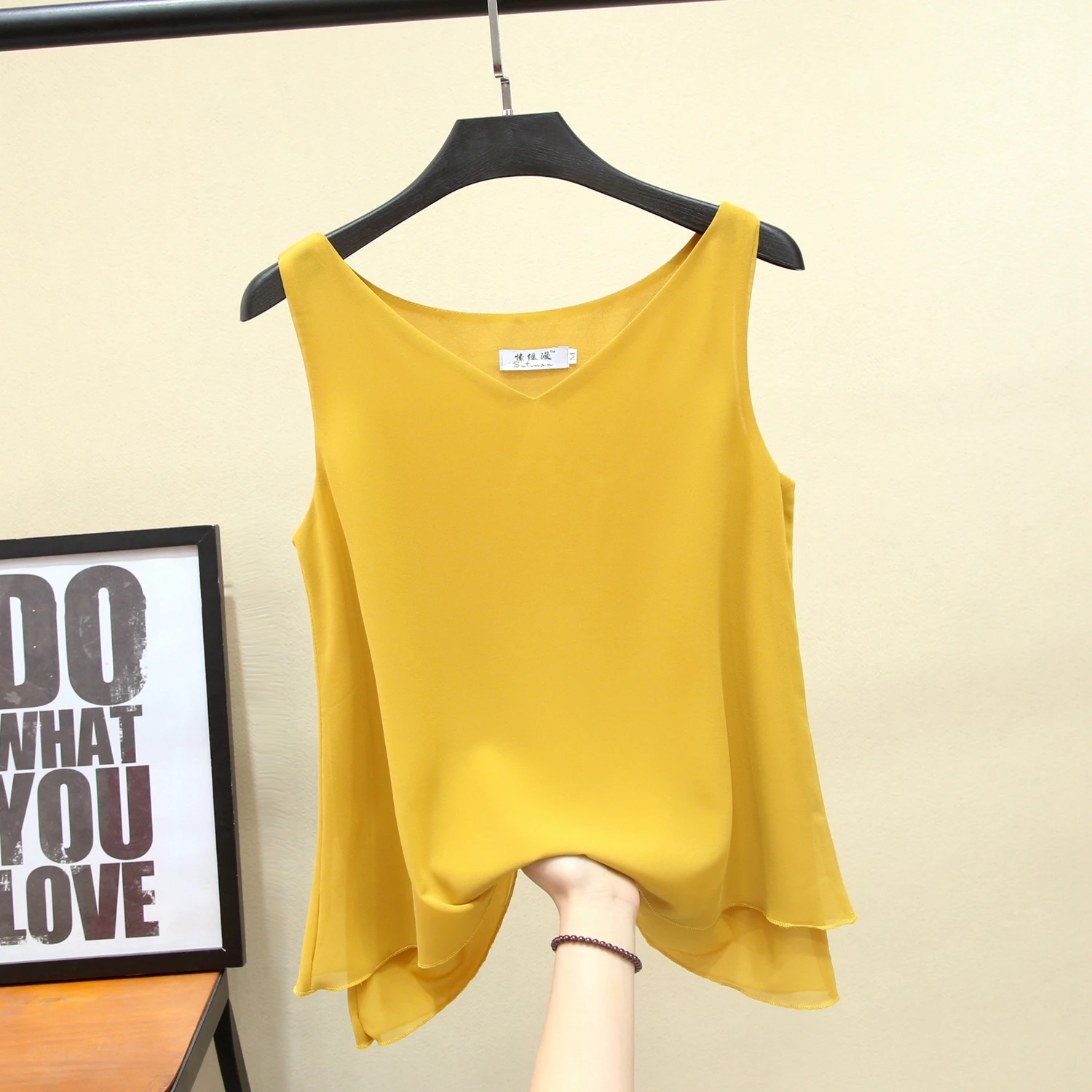 Блузка женская шифоновая без рукавов, модная брендовая свободная повседневная одежда с V-образным вырезом, большие размеры, на лето