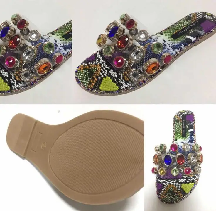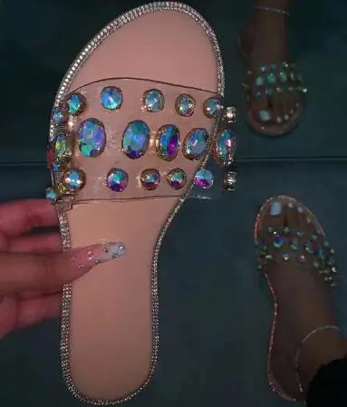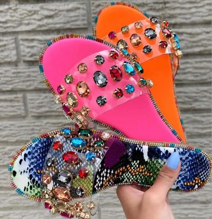 Женские тапочки с блестящими драгоценными камнями, уличные повседневные Нескользящие шлепанцы с драгоценными камнями карамельных цветов, Новинка лета 2022