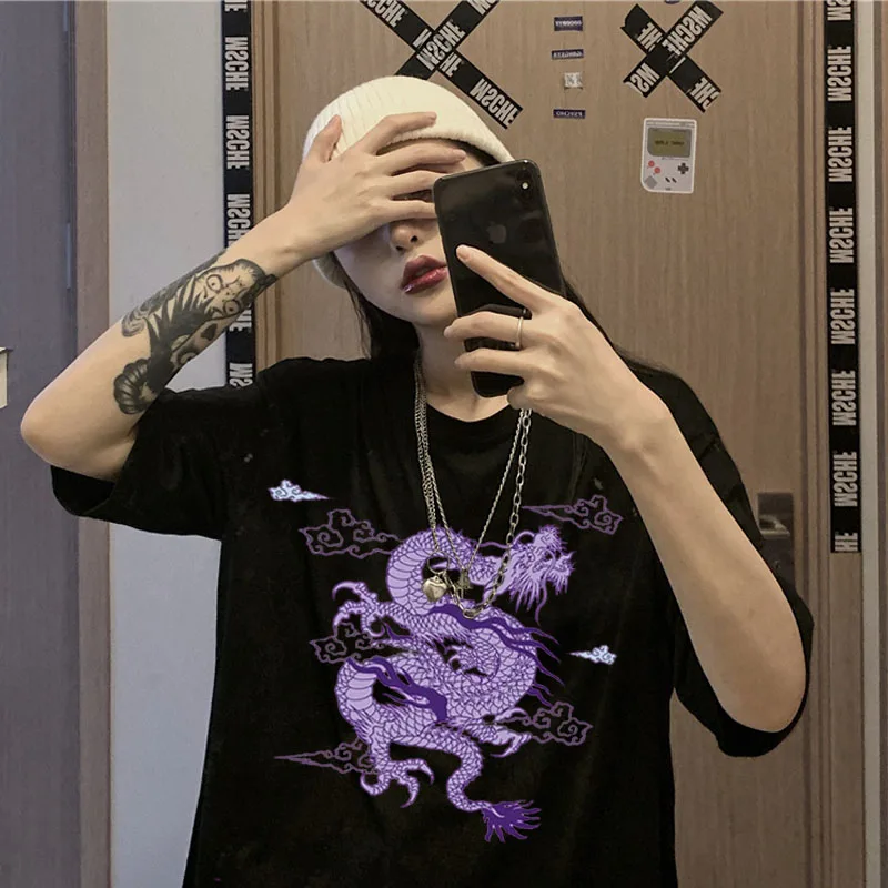 Женская футболка в стиле Харадзюку, Винтажная Футболка большого размера с изображением дракона, kpop, y2k, женские футболки