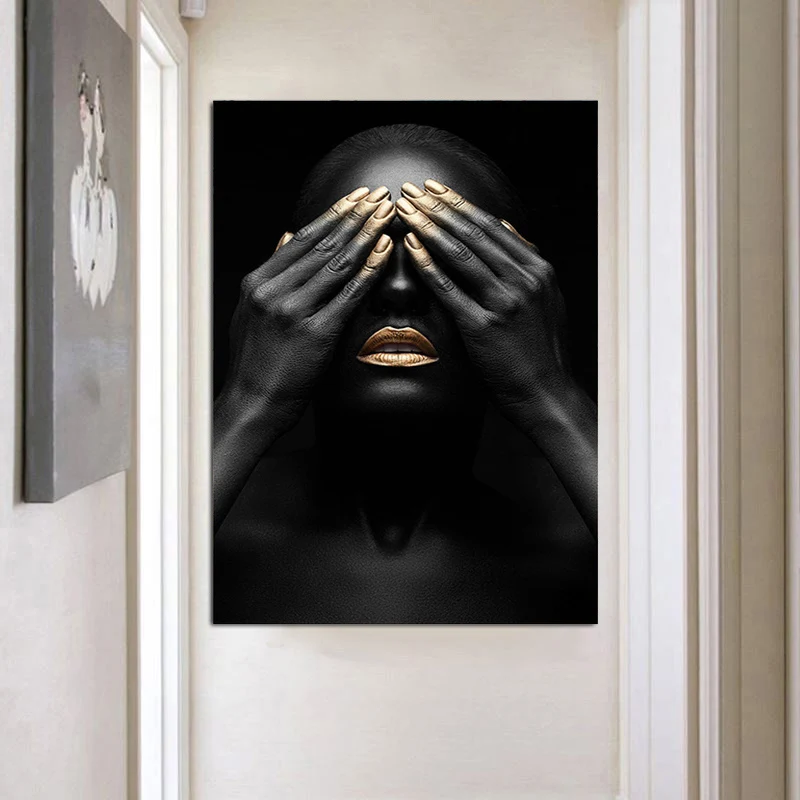 Картина маслом на холсте черная и Золотая женщина, постеры и принты в африканском стиле, Скандинавская настенная живопись для гостиной