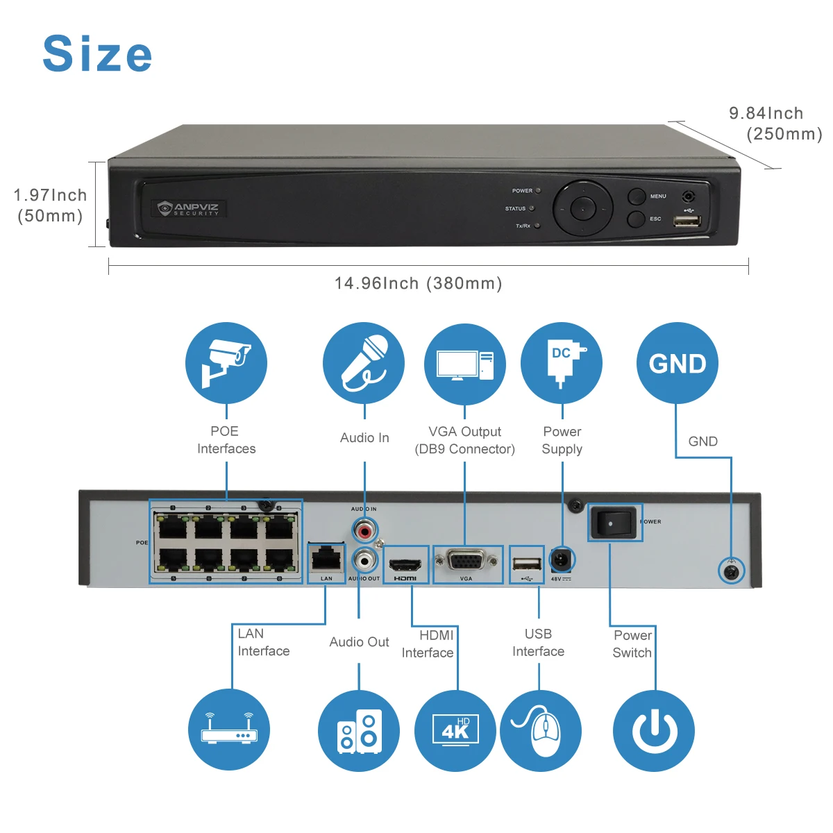 Система видеонаблюдения Anpviz, 8 каналов, 4K, 8 Мп, POE, IP