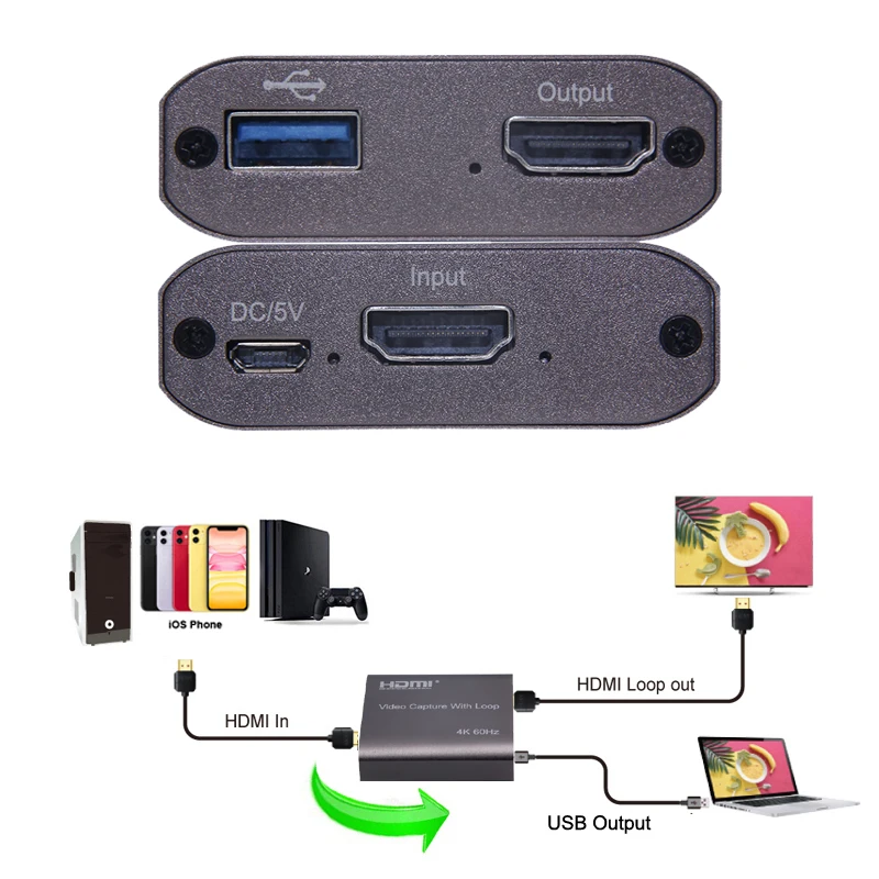 Плата видеозахвата HDMI HD 1080P 4K 60 Гц, Плата видеозахвата с HDMI на USB 3,0, для настольных игр, искусственная запись, локальный выход