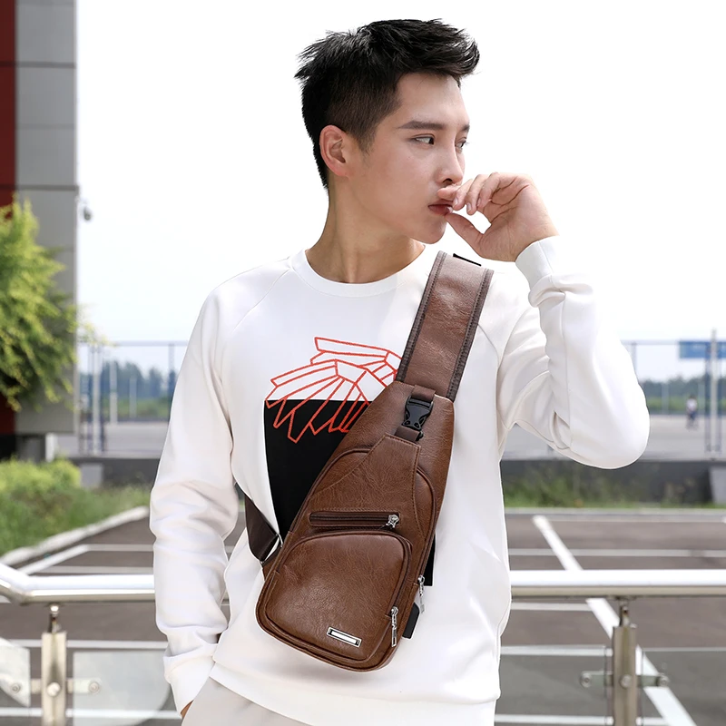 Сумка-мессенджер мужская с USB-зарядкой, маленький нагрудной мешок ...