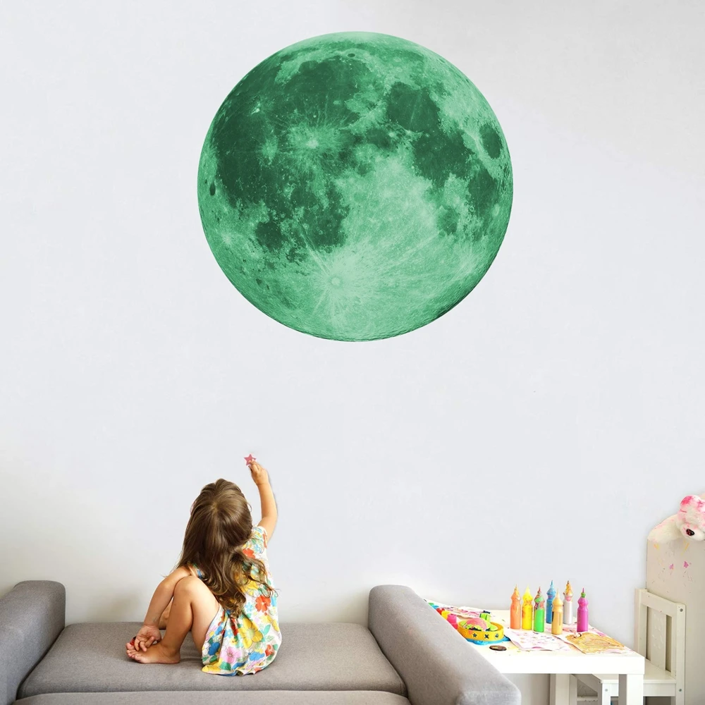 Световой Луна 3D стены Стикеры для детской комнаты гостиной Спальня декорация Переводные картинки для дома светится в темноте стены Стикеры украшения комнаты