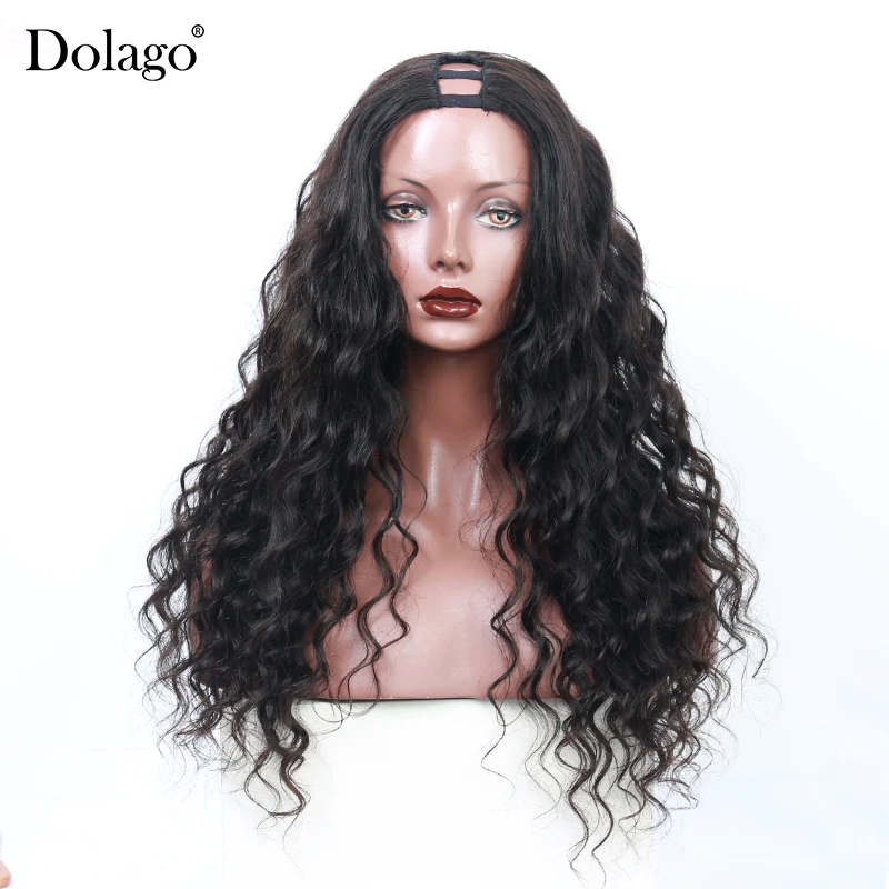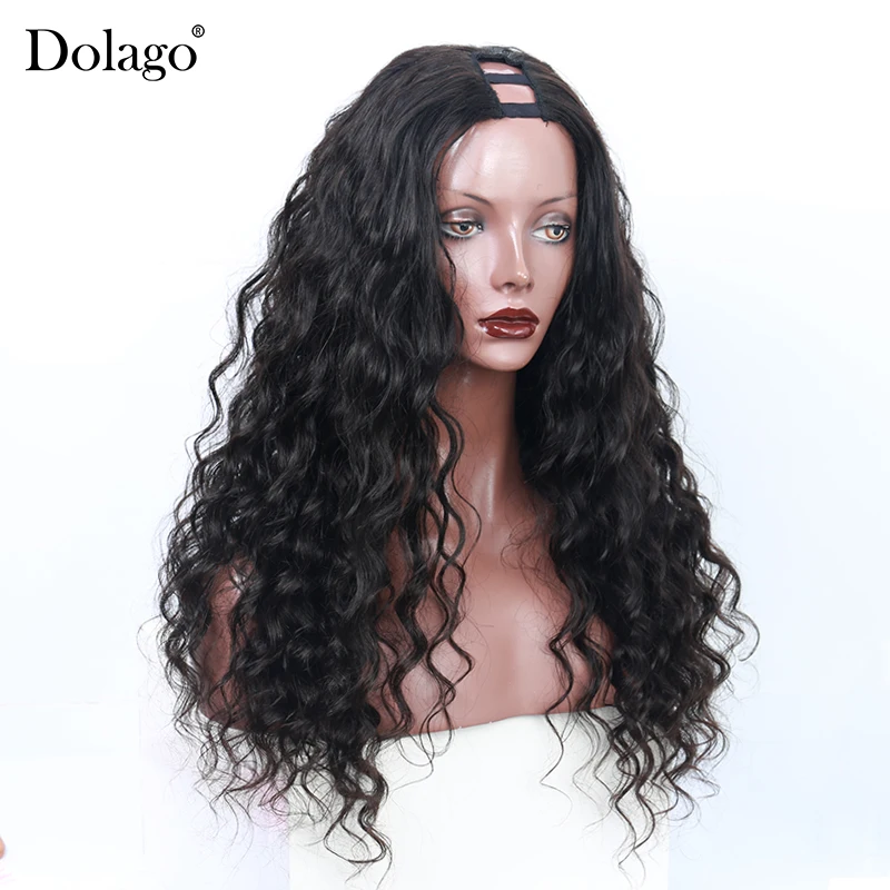 Парик U-образной формы, натуральные волнистые волосы 250% плотности, бразильские натуральные волосы, парики с зажимом, человеческие волосы для чернокожих женщин Dolago