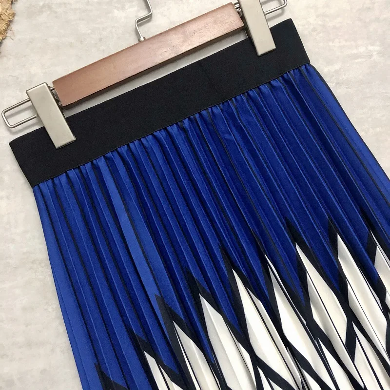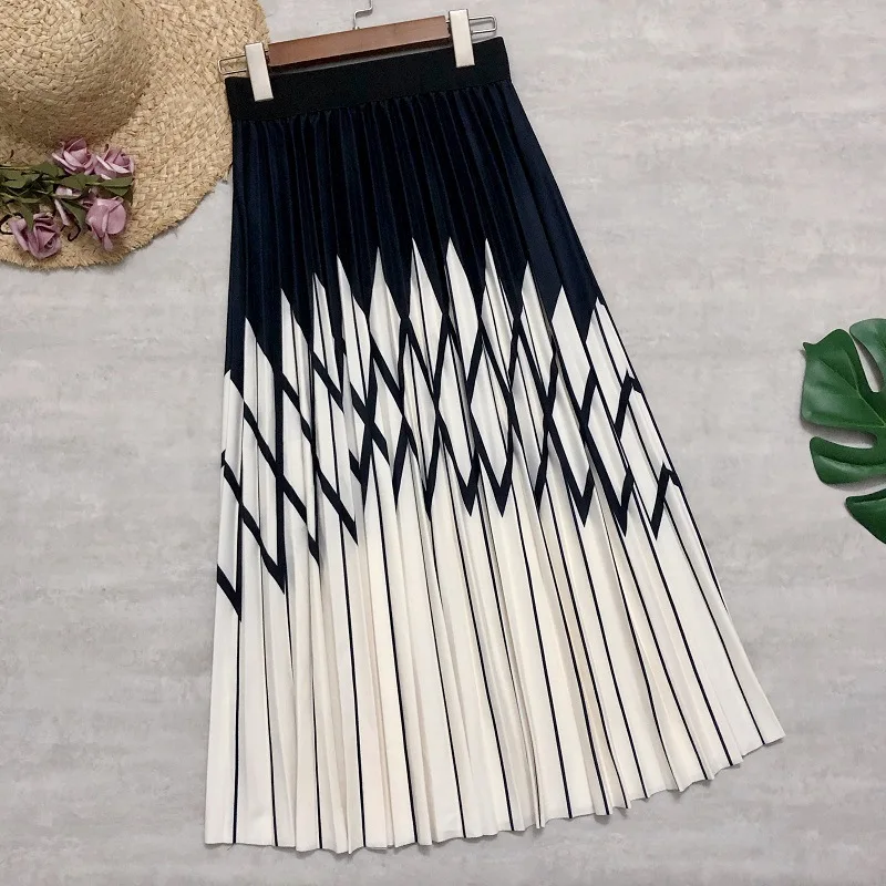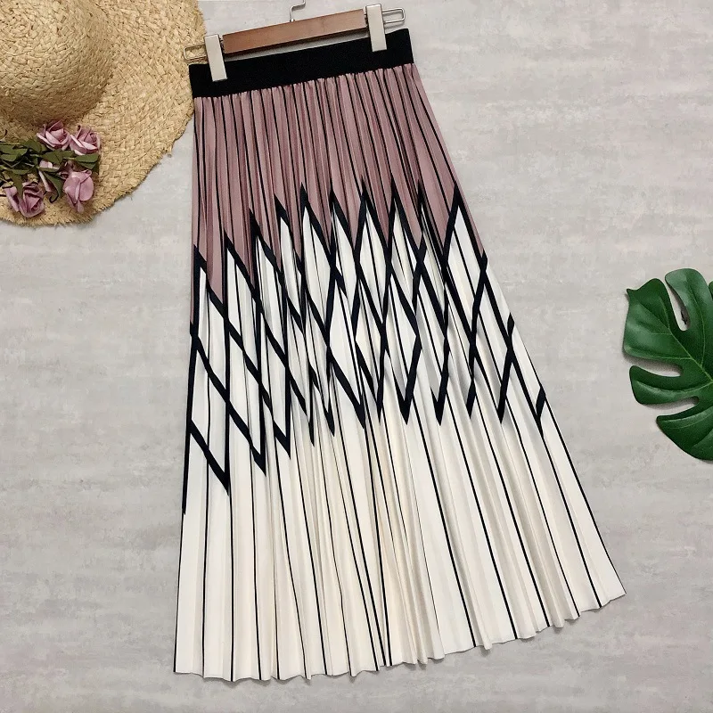 Женская плиссированная юбка в полоску, Повседневная трапециевидная длинная юбка с высокой талией и алмазным принтом в богемном стиле, лето 2022