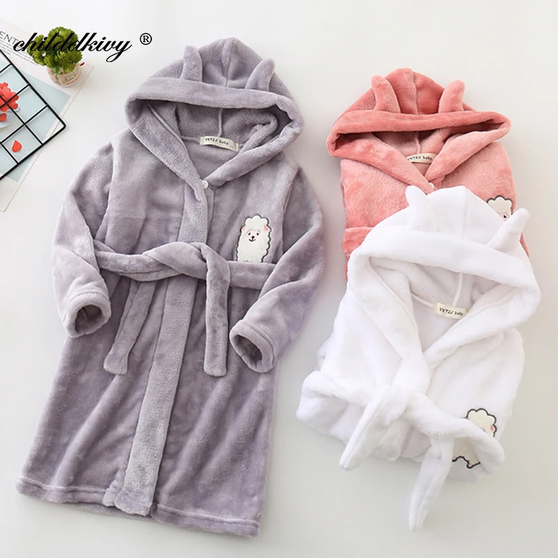Банный халат для девочек, фланелевый, с мультяшным рисунком, От 2 до 8 лет