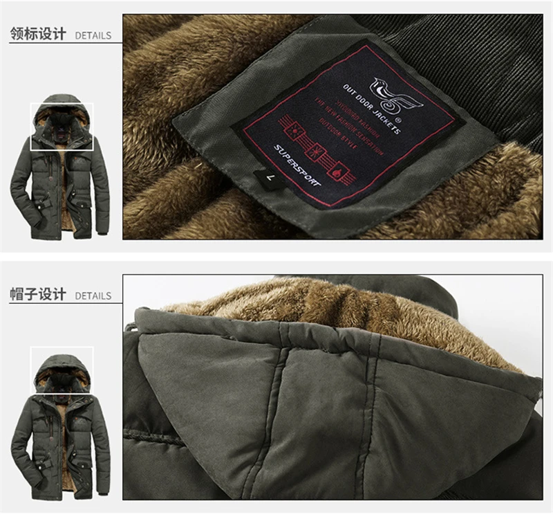 Зимняя куртка в стиле милитари для мужчин толстые теплые парки пальто с капюшоном верхняя одежда с защитой от ветра, с несколькими карманами стеганая куртка размера плюс 7XL 8XL