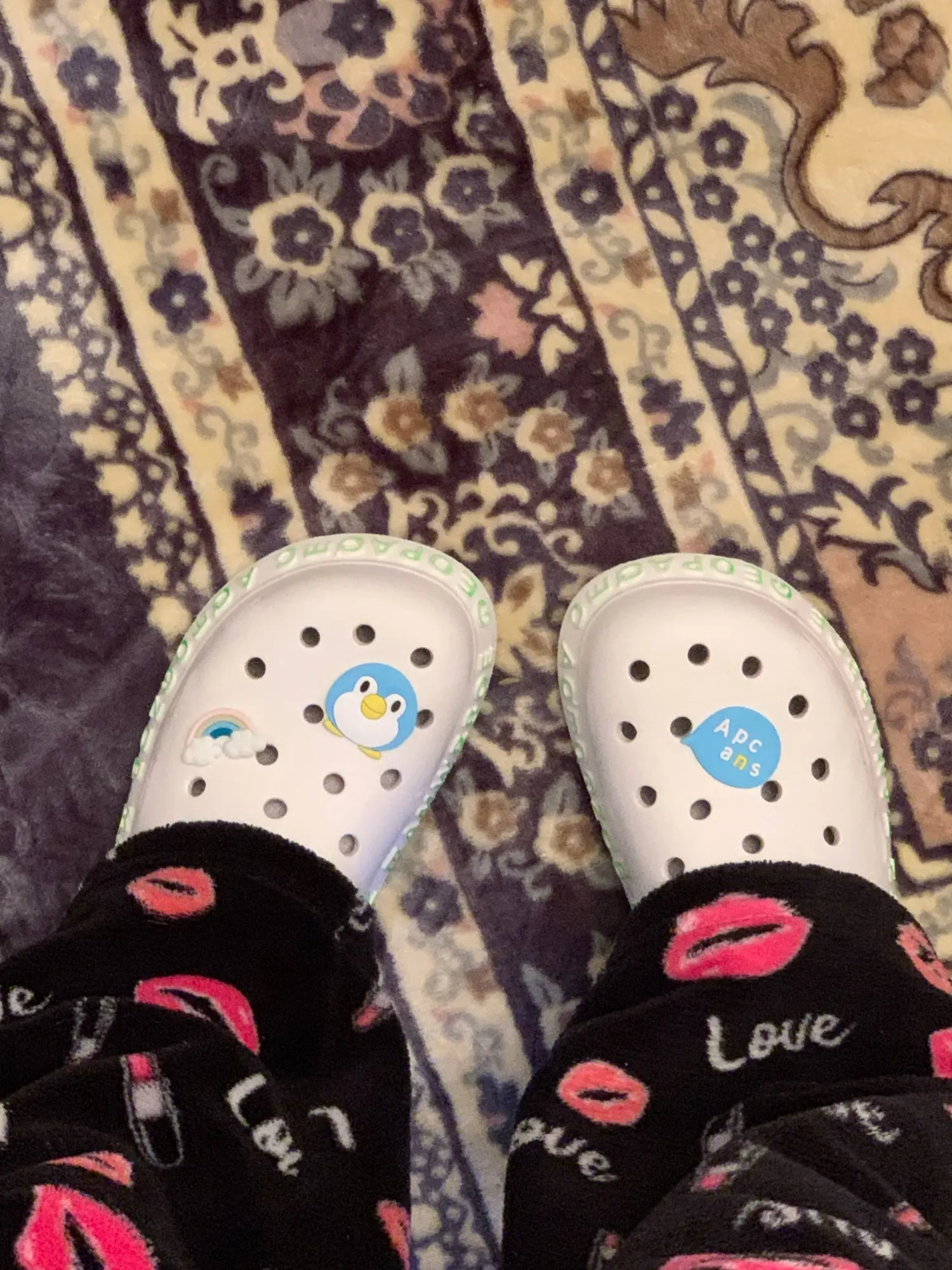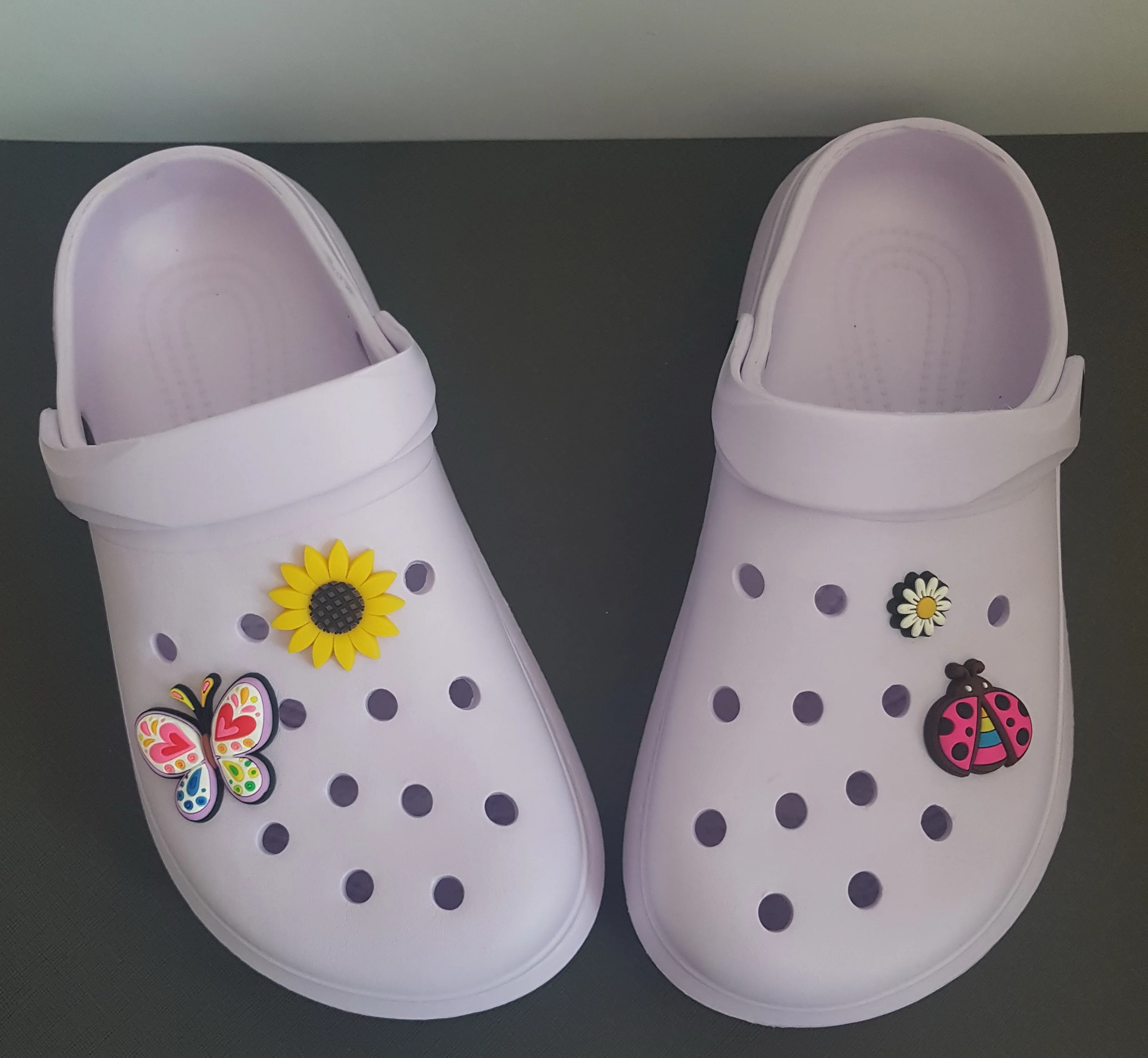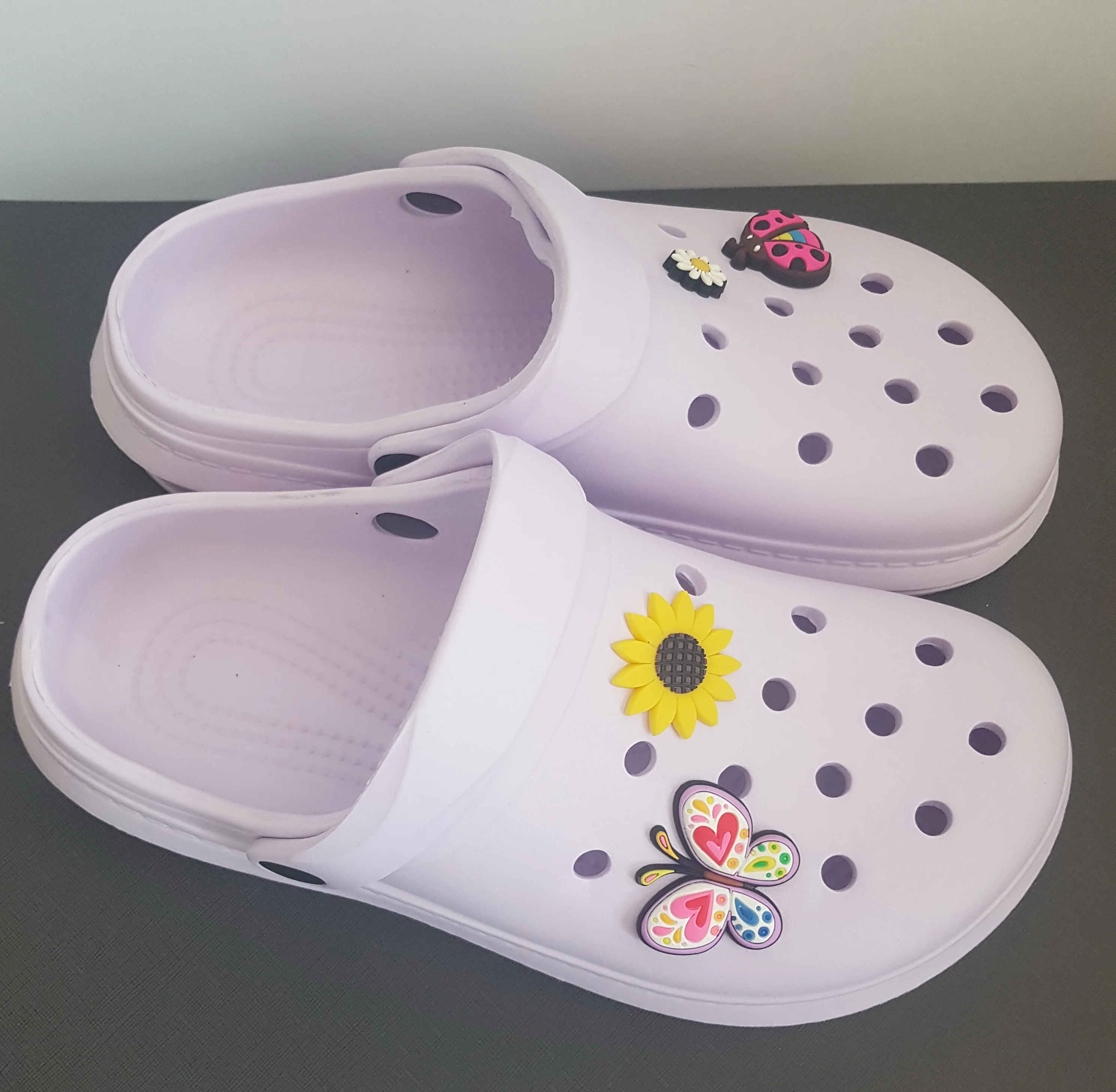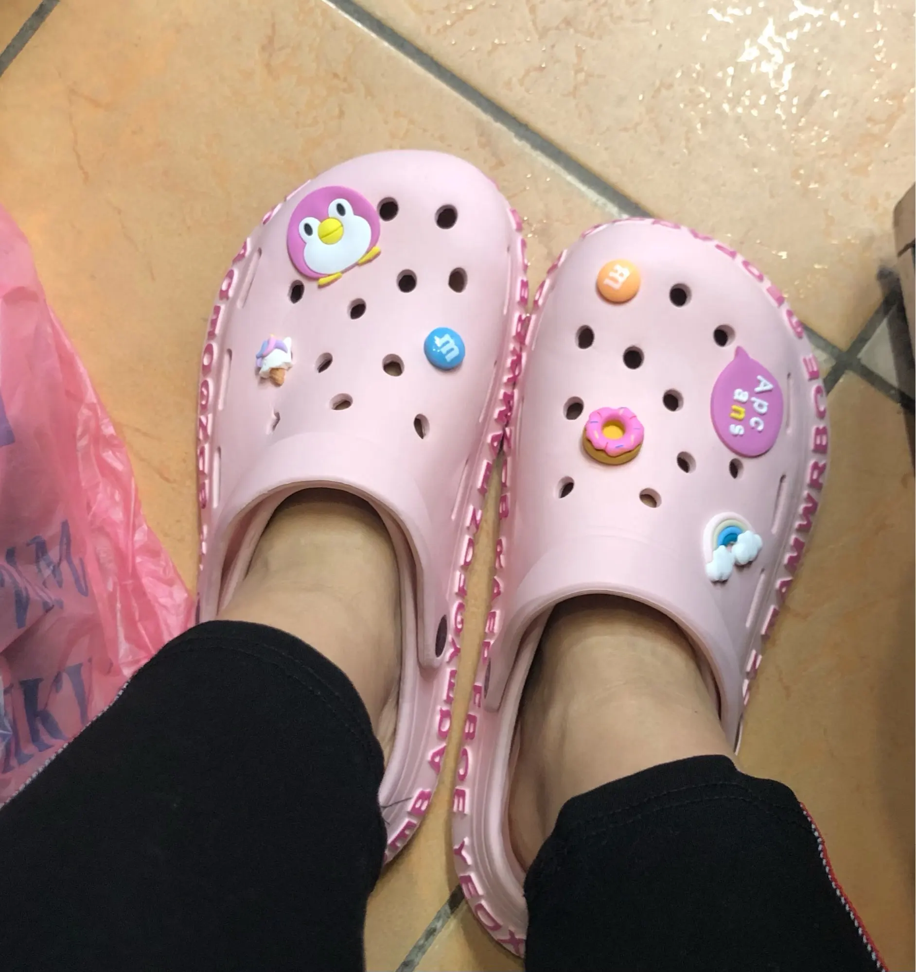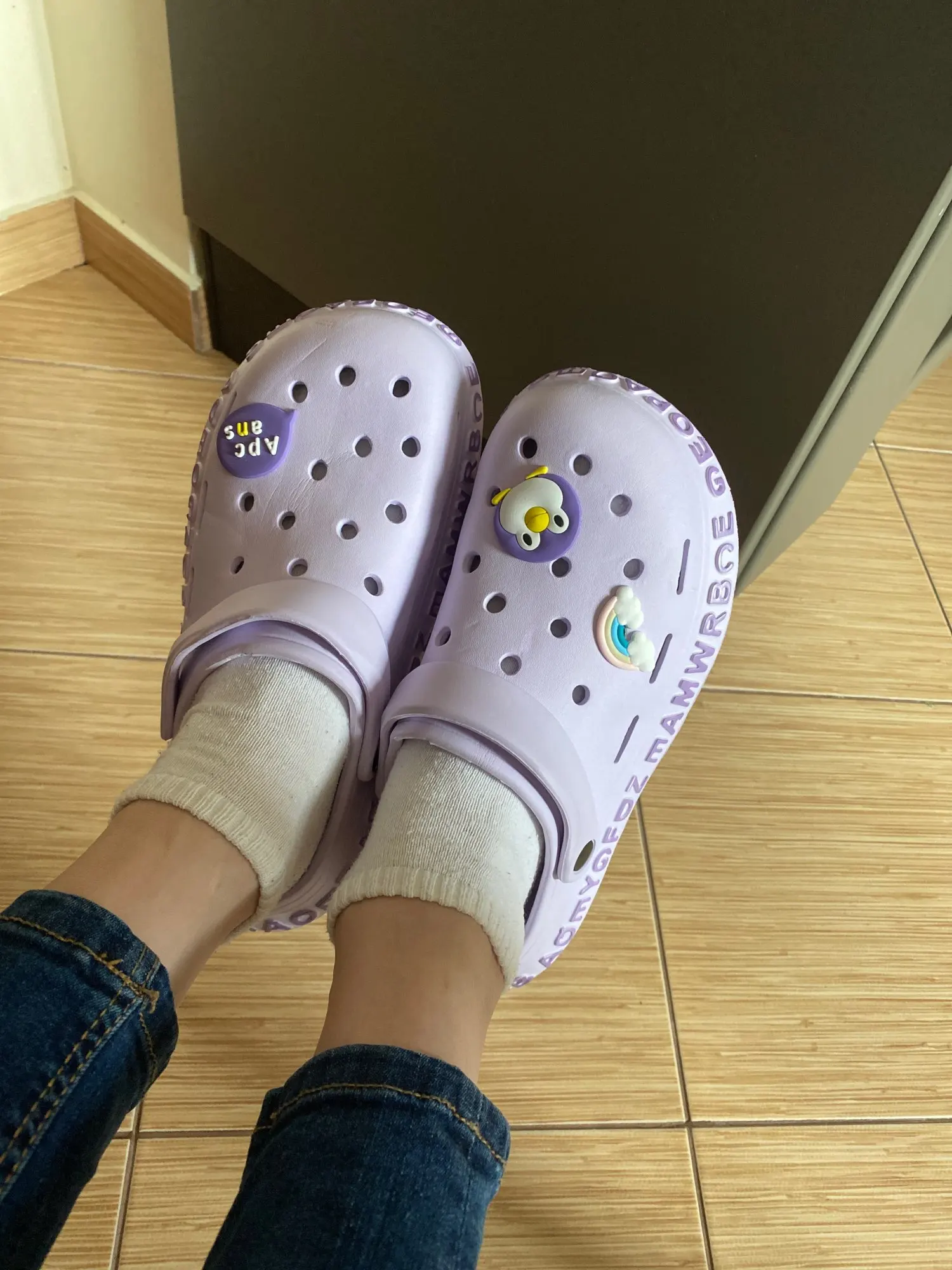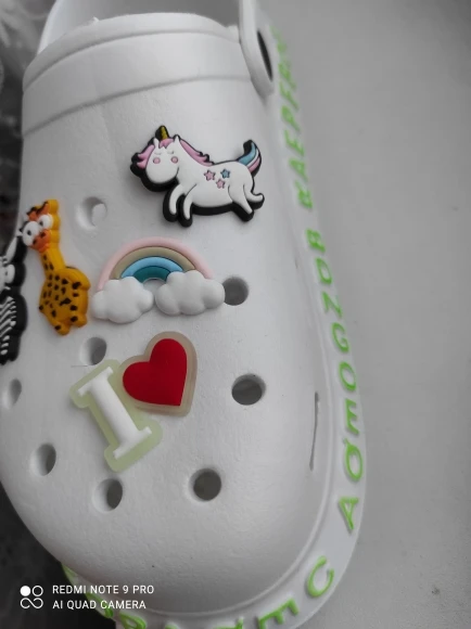 i love them so much! they’re very comfortable and cute at the same time. they also come with 3 charms as shown in the photos. they came within 3-4 weeks which i do not mind. if you’re planning on purchasing these, please buy a size or 2 bigger than your original size you’ll thank me later.