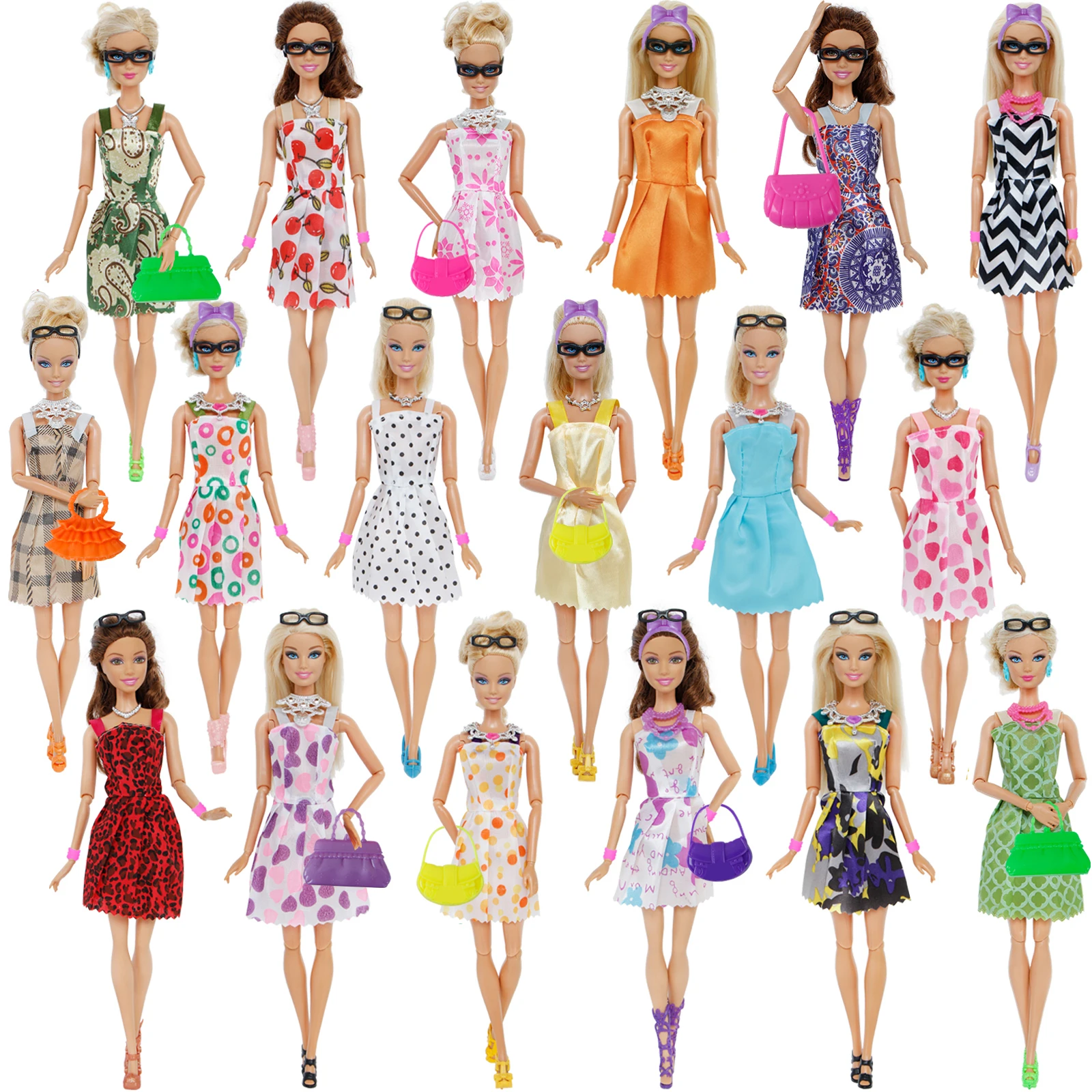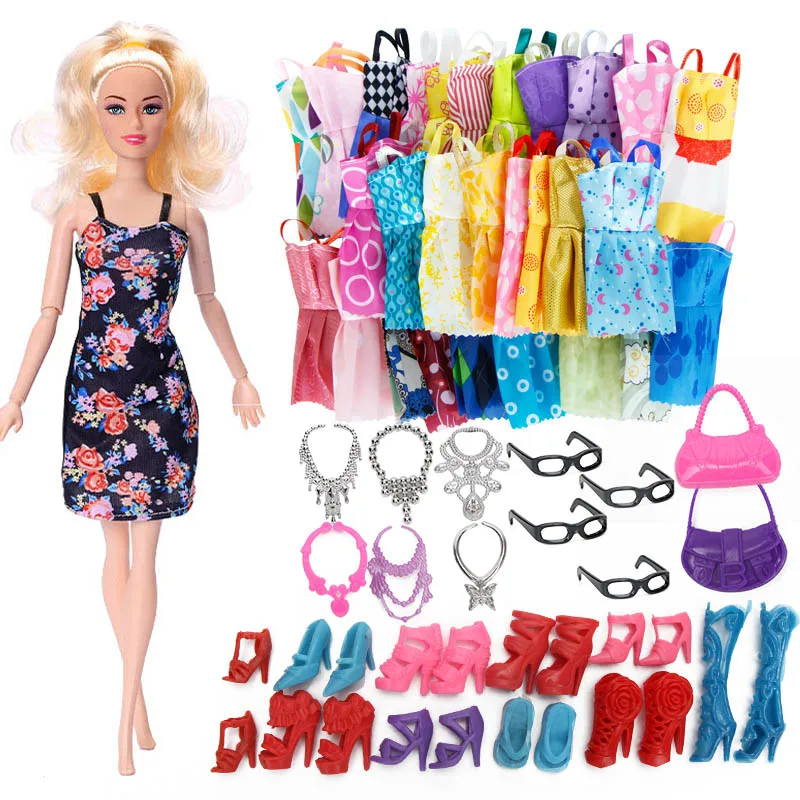 Аксессуары для кукол 32 шт., 10 модных юбок, 4 очки, 6 ожерелий, 2 сумочки, 10 платьев для обуви, Одежда для куклы Барби