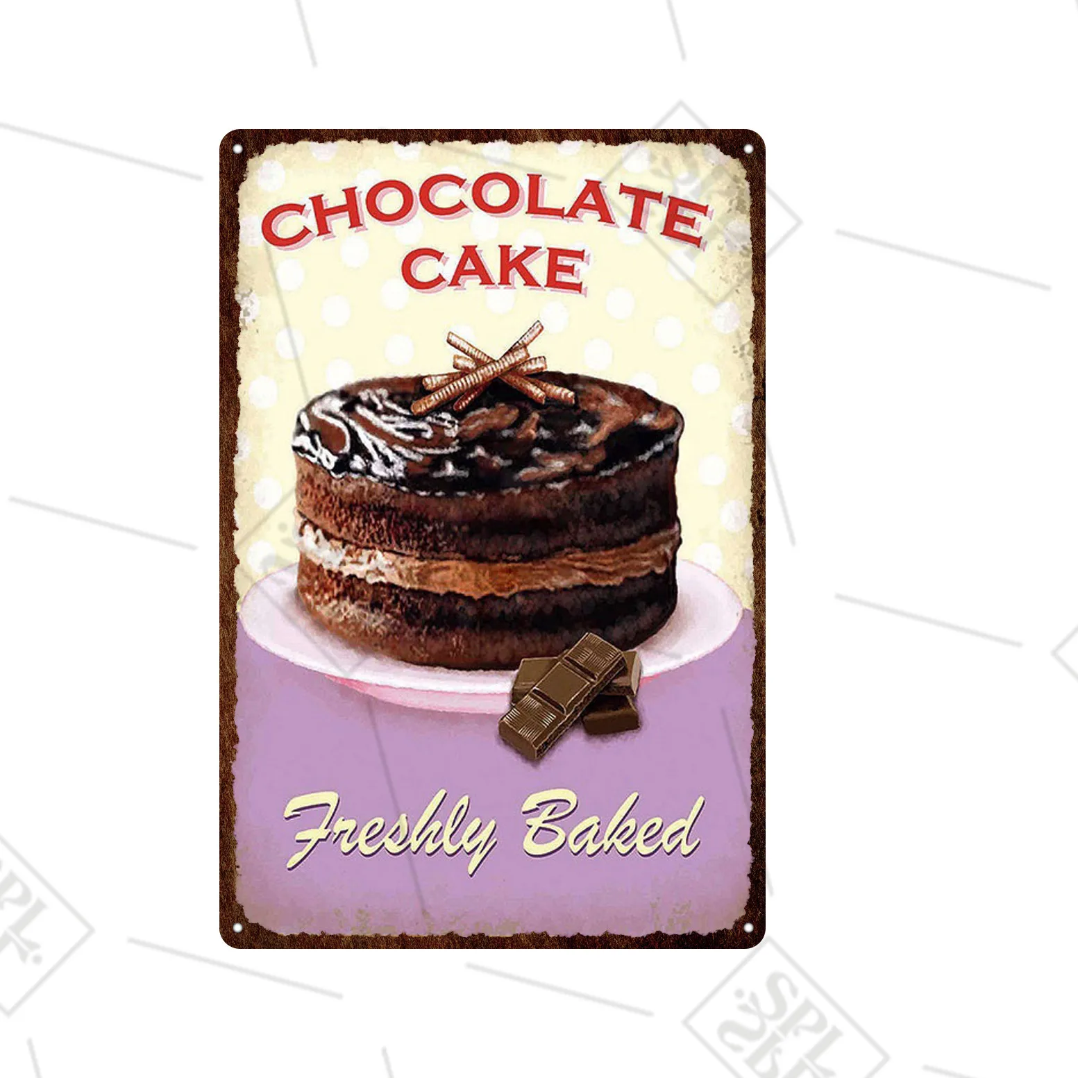Шоколадный торт, винтажный металлический знак, розовый металлически...