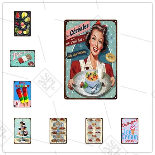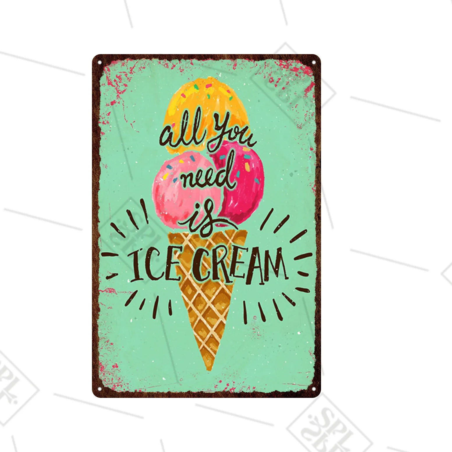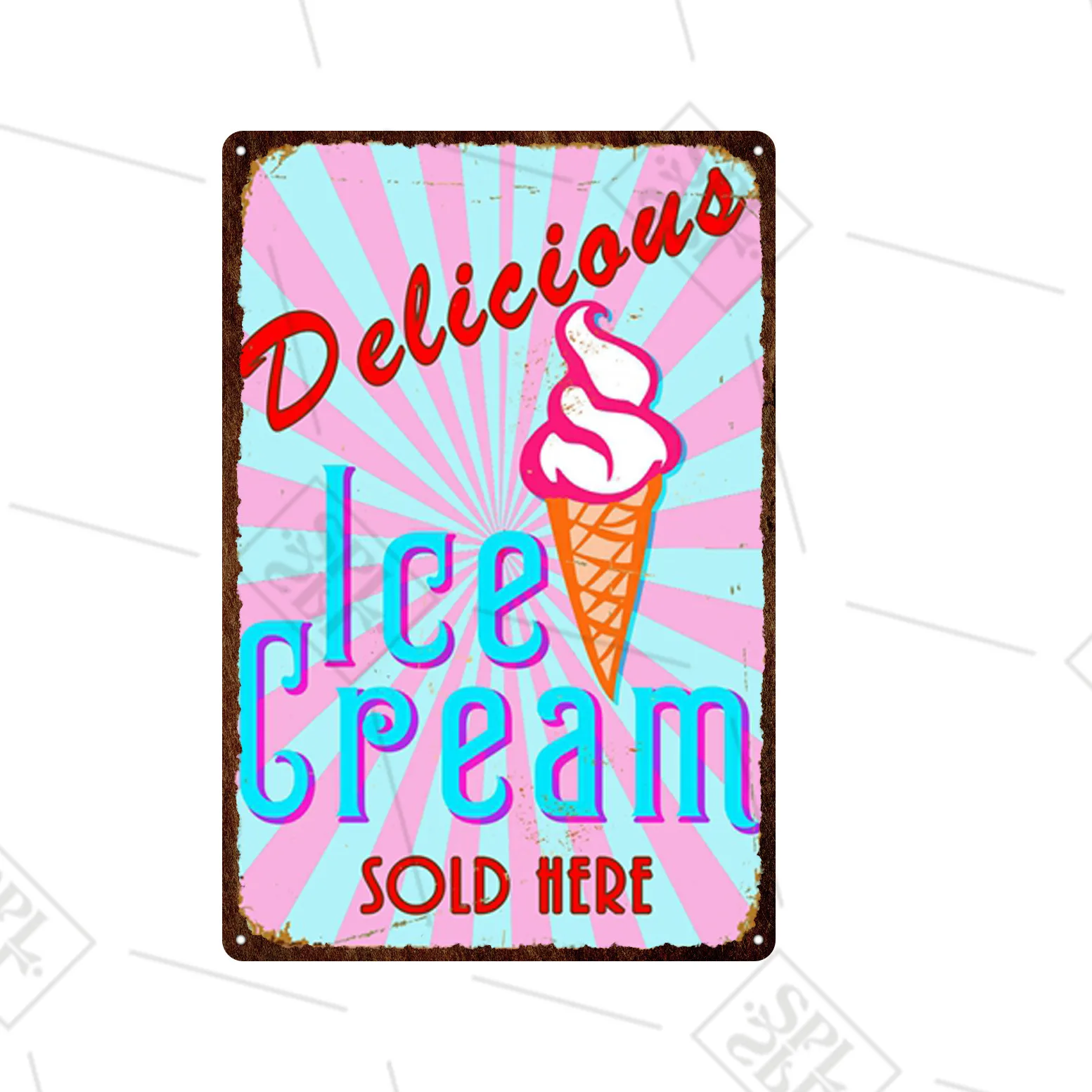 Десерт, мороженое, фаст-фуд, металлический знак, Ретро металлическа...