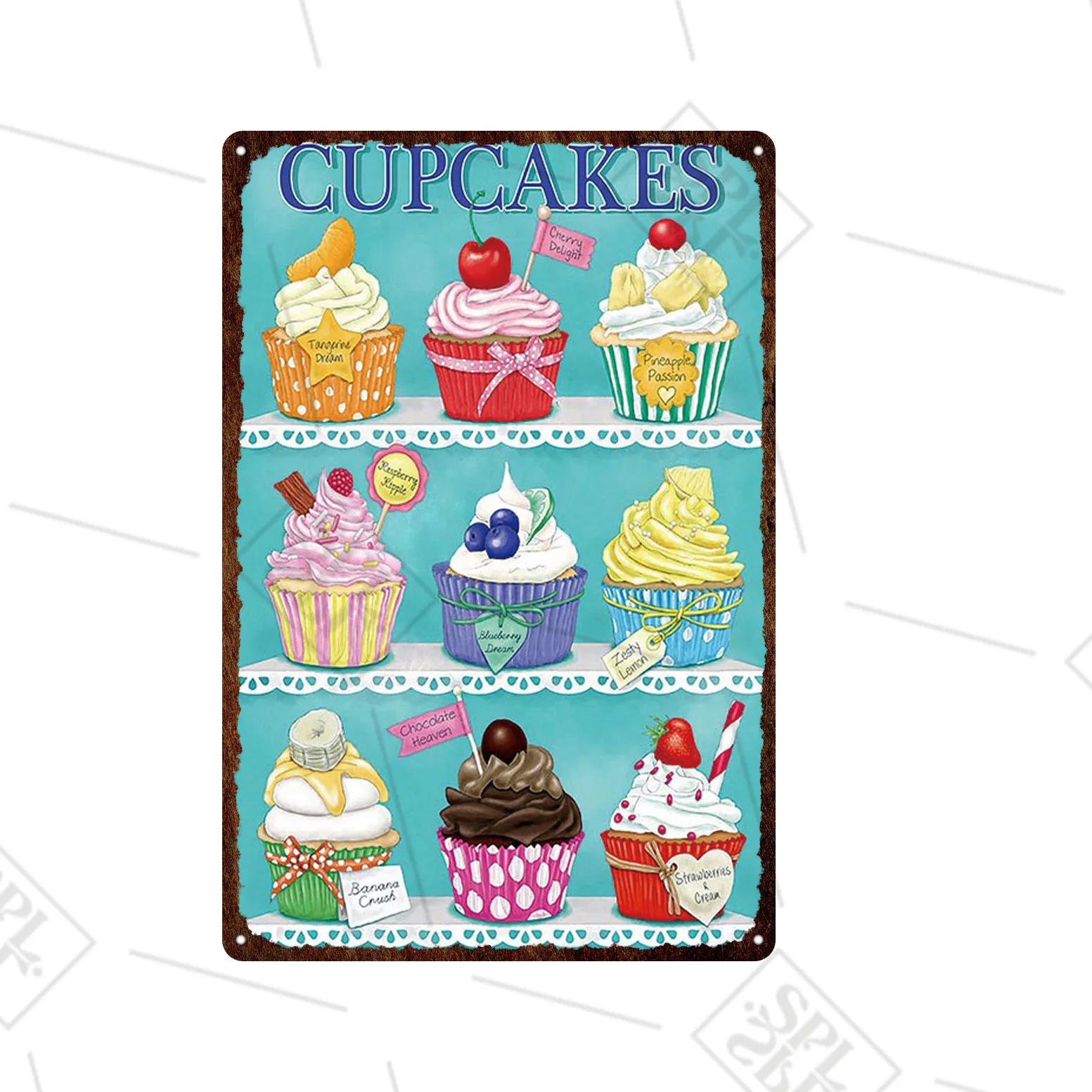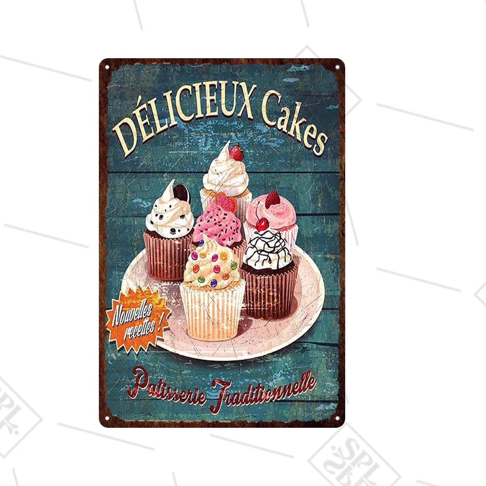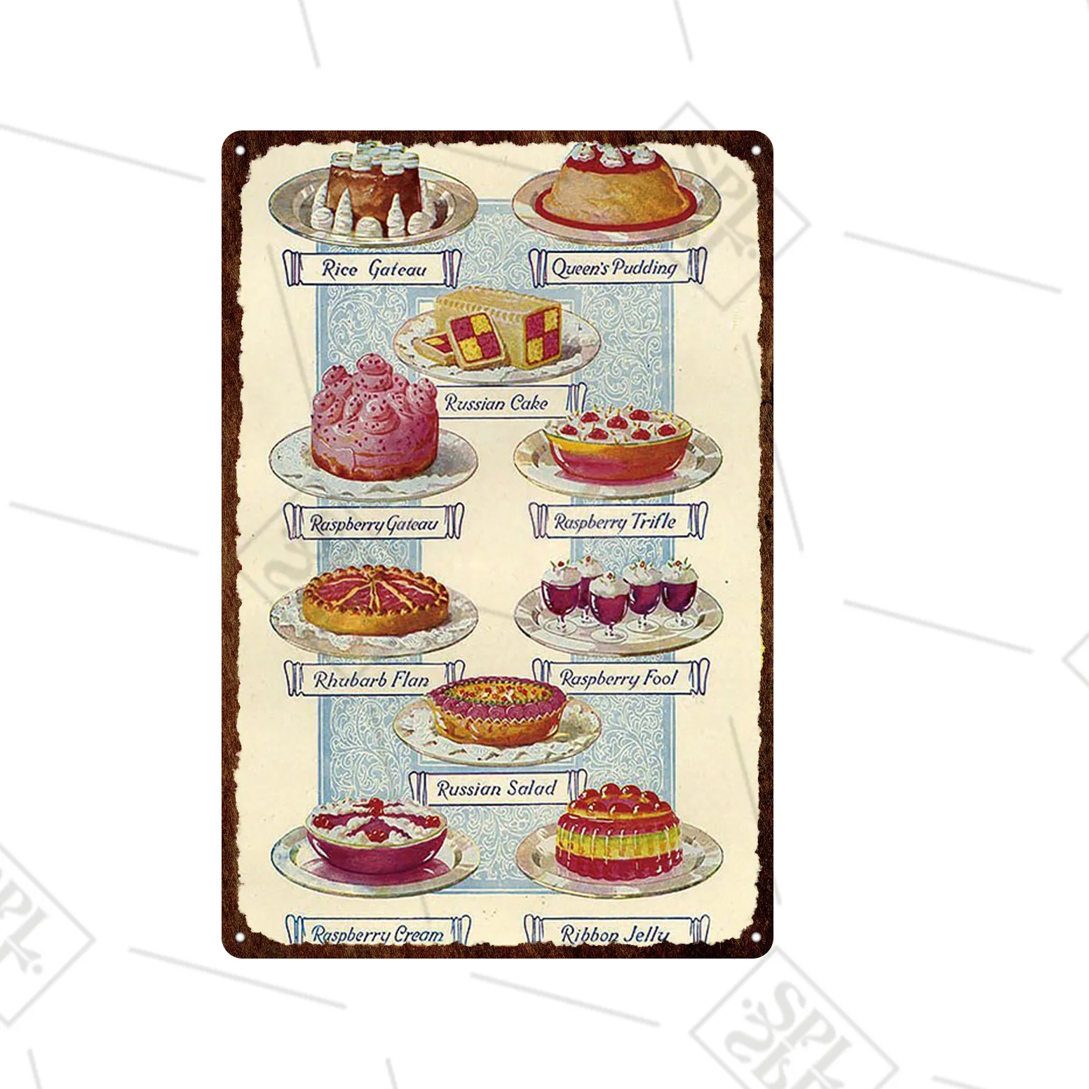 Десерт, кофе, чай, время, винтажный текстовый металлический знак, ж...