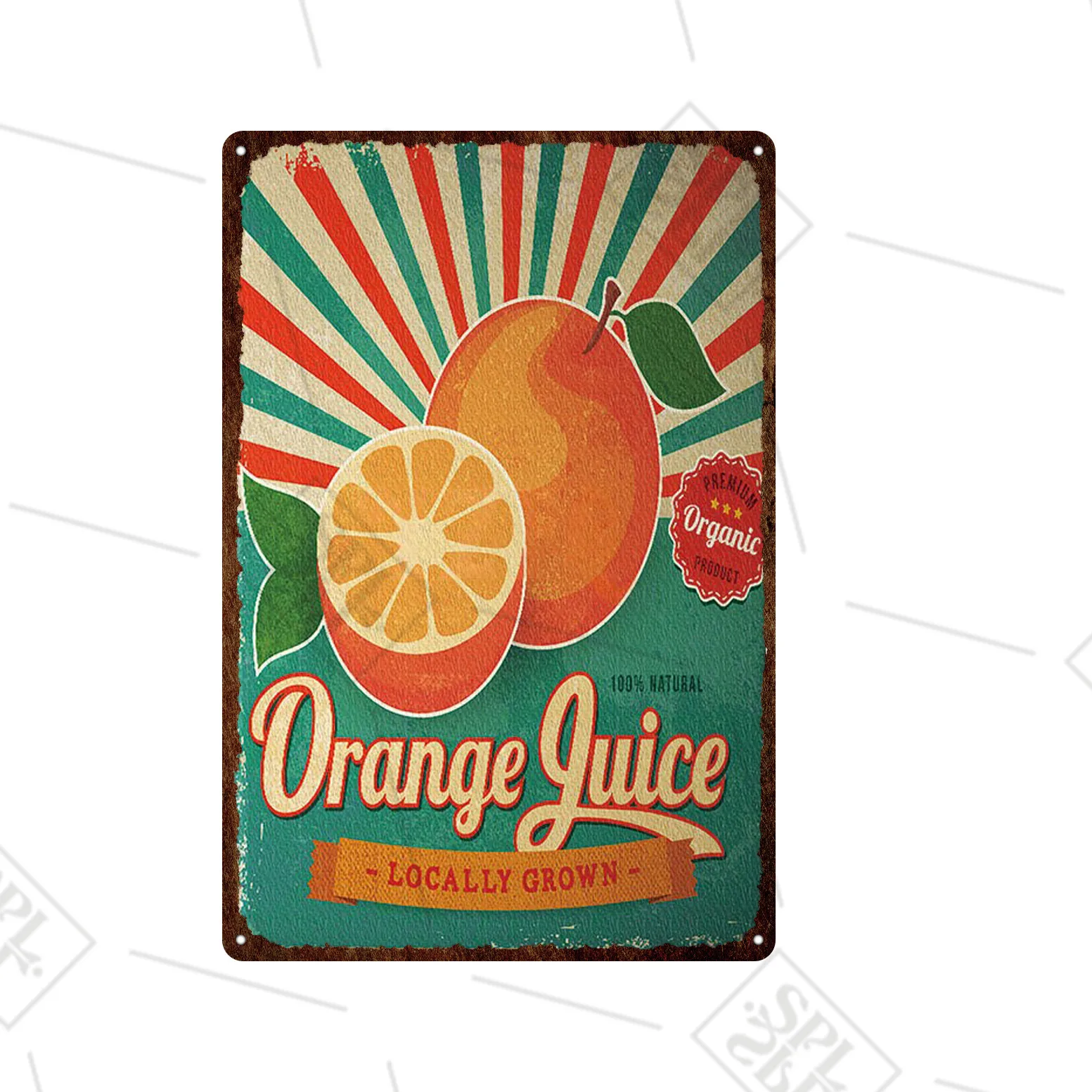 Металлический постер с изображением сока, холодного напитка, вывеск...