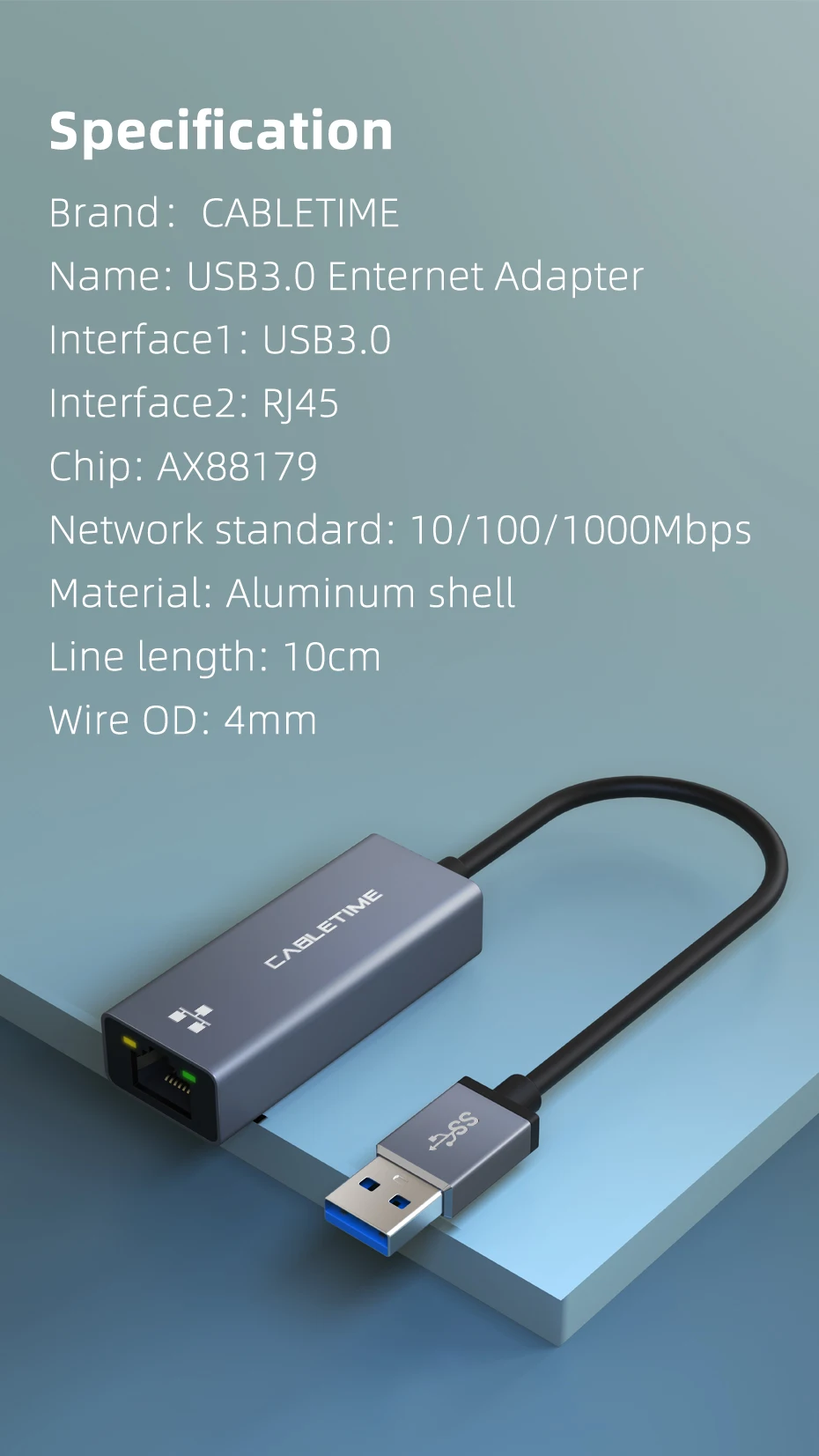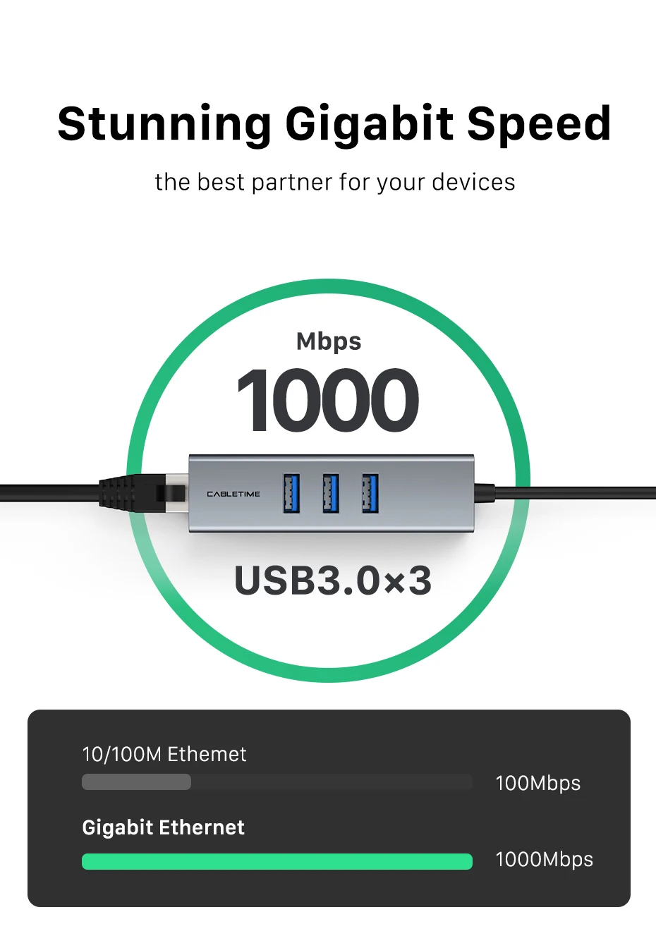 Ethernet-адаптер CABLETIME, USB 1000, 3,0, RJ45, 2,0 Мбитс, для ноутбука, Nintendo Switch, Macbook Air, USB LAN C358