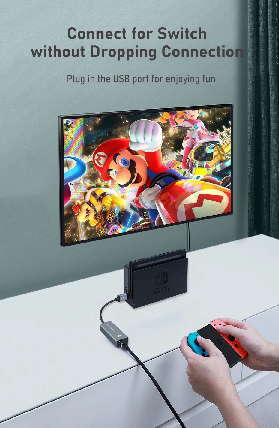 Работает с nintendo switch, используйте порт usb 3,0 (рядом с выходом hdmi)