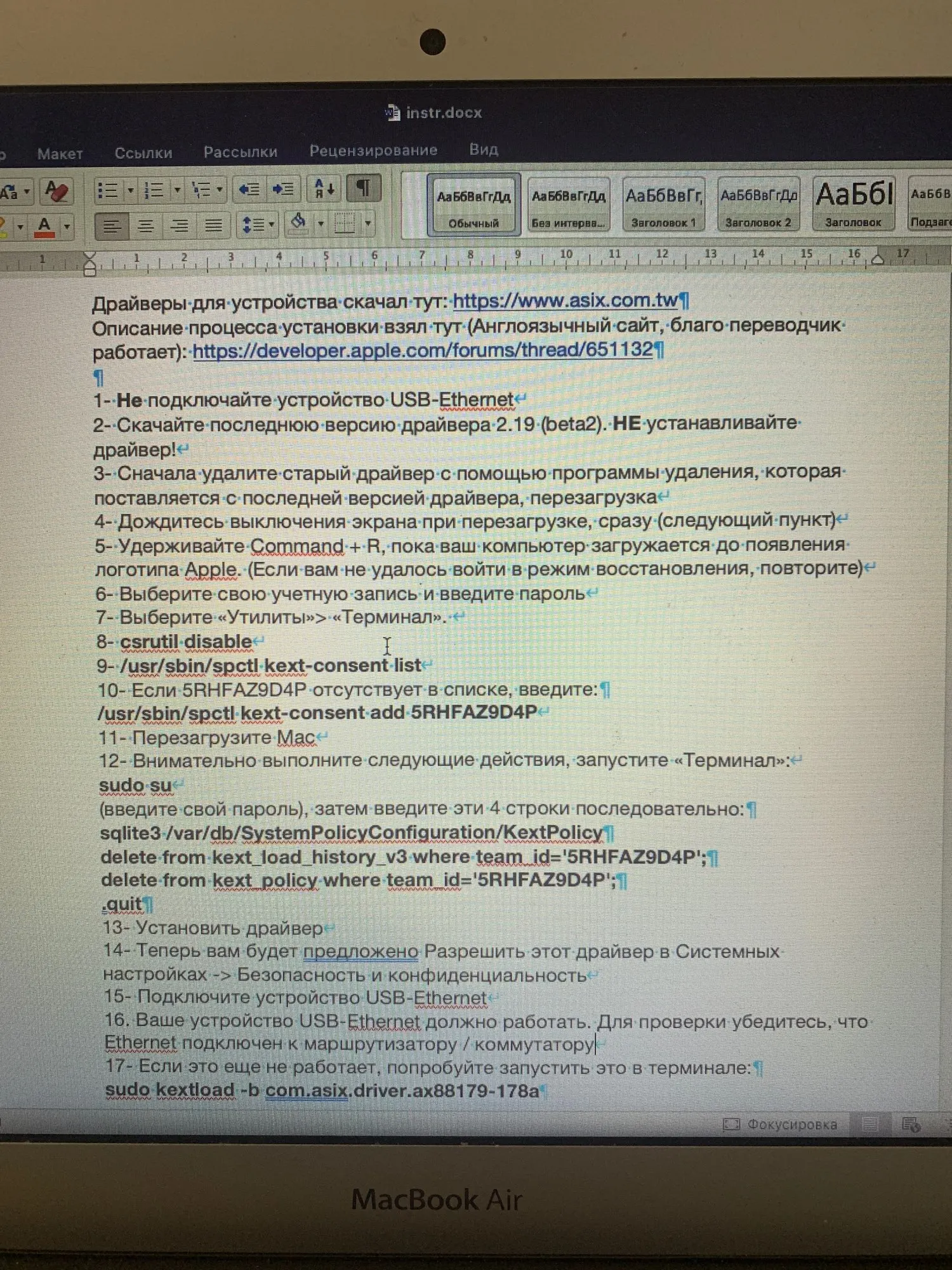 Для доставки в Россию, могли бы вкладывать описание на русском языке. Установка на MacBook macOS Big Sur, продавец не предоставил ни каких описаний (инструкций), включил и заработало, для данного устройства не подходит.