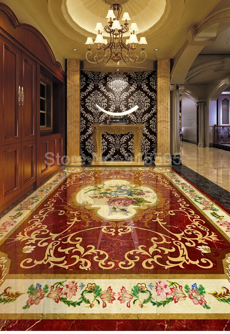 Пользовательские 3D наклейки на пол обои в европейском стиле мраморный цветочный узор гостиная спальня декор для пола настенная наклейка наклейки на стену