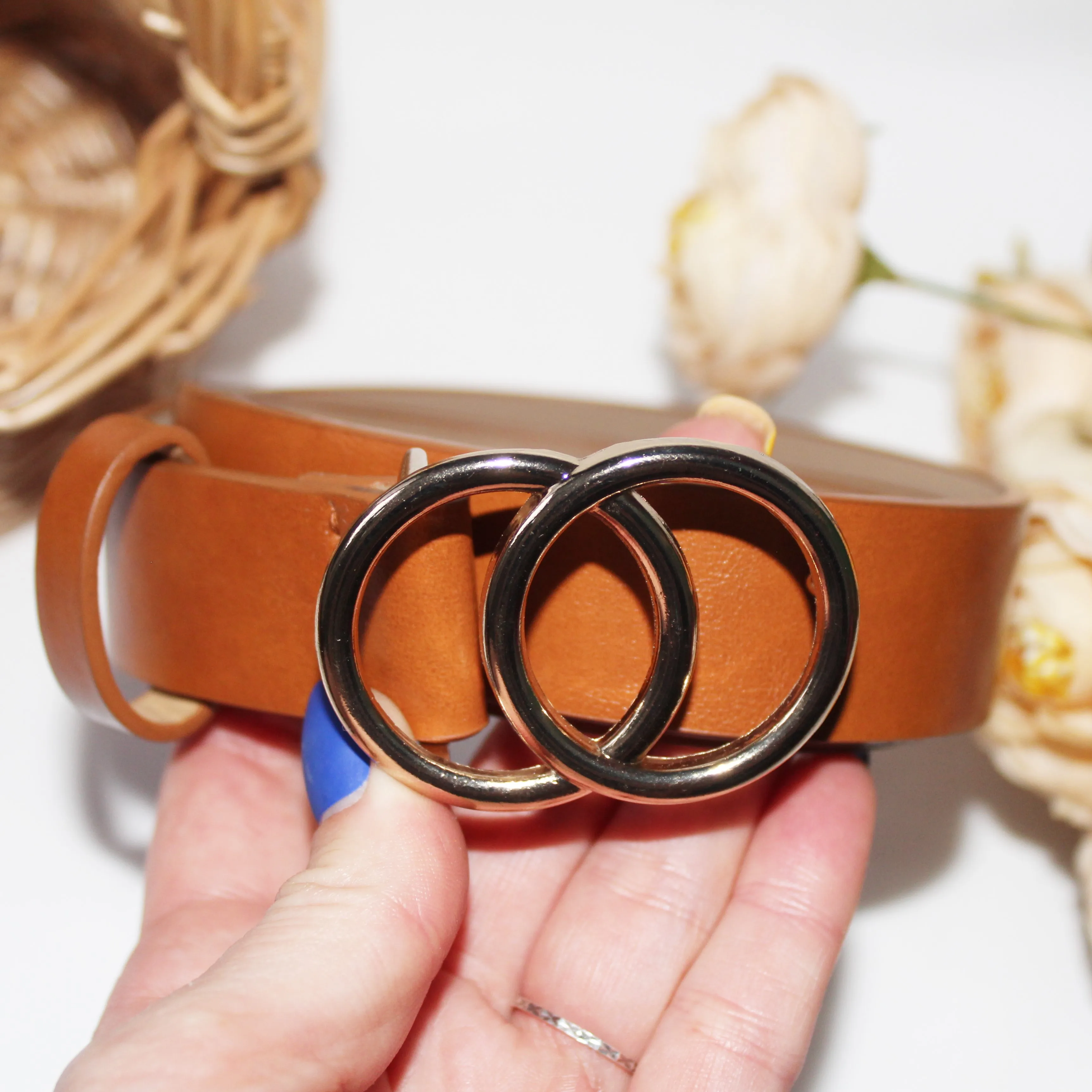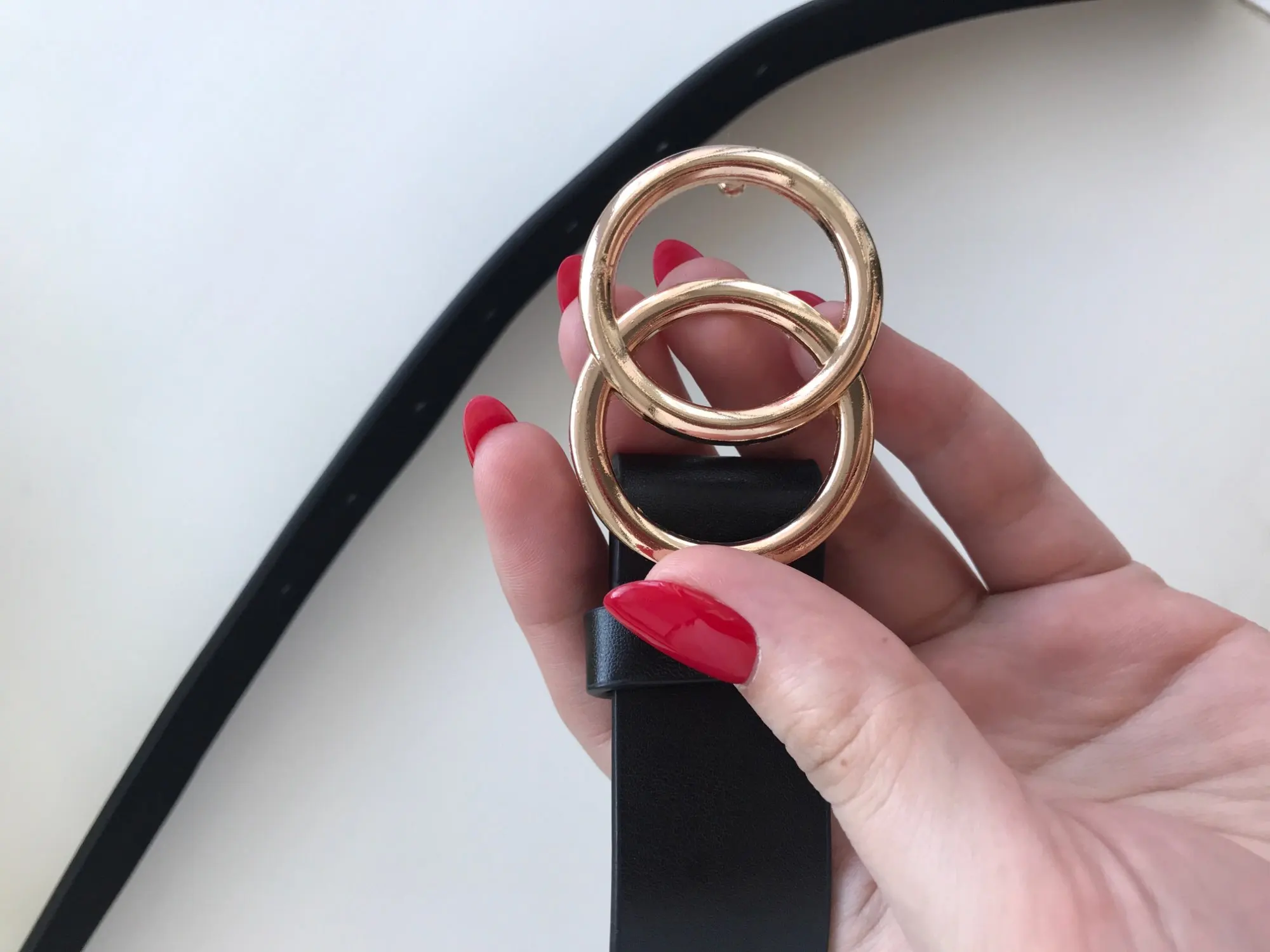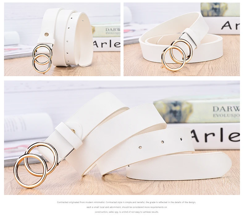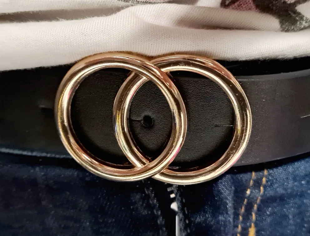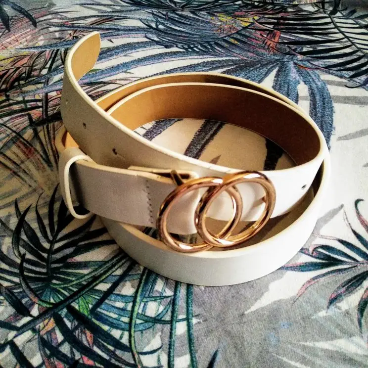 Супер ремень с двойной круглой пряжкой выполнен в столь модном сейчас стиле - шикарная классика. Заказываю ремни в этом магазине постоянно. Качество супер, от кожи не отличить. Запаха неприятного нет. В общем, ремень не только модный, но и добротный, будет носиться долго, при сгибе заломы не образуются. Размер дырочек идеально подходит под пряжку. Сама пряжка хорошо закреплена строчкой. Обратная сторона имеет цвет натуральной кожи, ремень не скользит на одежде. Моя талия 66см, а здесь размер от 80 до 90 см. При этом ремень длинный 105 см, можно носить как на талии, так и на бедрах, что я и делаю, надевая поверх свитеров, на плотные джинсы. У продавца ремень представлен в пяти цветах. Мне нравится именно белый цвет в этой модели, отлично сочетается с любой бижутерией, сумками, платками. Ремень рекомендую однозначно. За такую цену это отличная покупка. Доставка 3 недели в Украину. Упаковка отличная. Сервисом довольна. Супер!