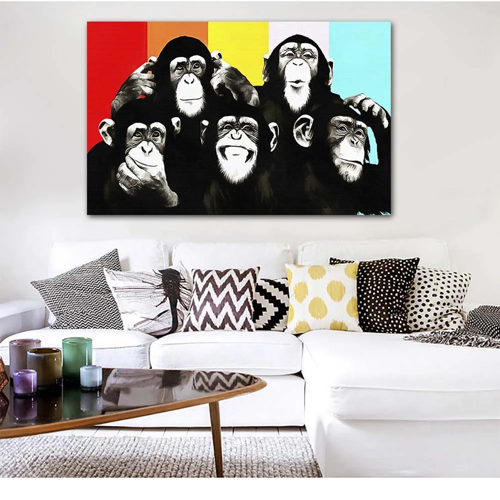 Энди Уорхол разноцветные обезьянки животных холст с печатью постера картины для гостиной стены искусства Куадрос картины для декора гостиной