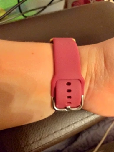 Отличный ремешок. Мягкий на ощупь. Девушкам с тонким запястье стоит иметь в виду, что этот ремешок немного длиннее оригинального. Этот решешок на самом первом отверстии (самом маленьком) по свободе как 2-3 на оригинале, но для меня это совсем не критично