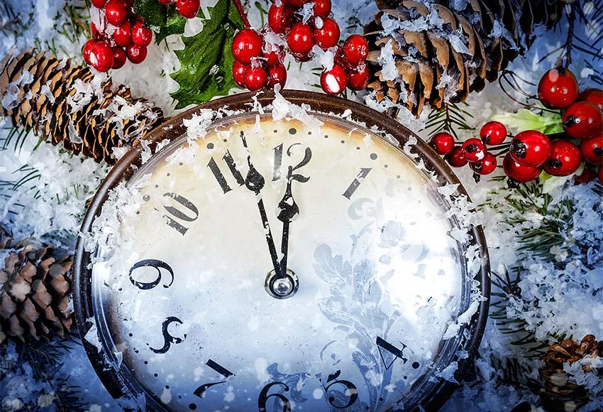 Новый год часы фотография Фон зима снег фоновая фотография Рождество фон для фотостудии