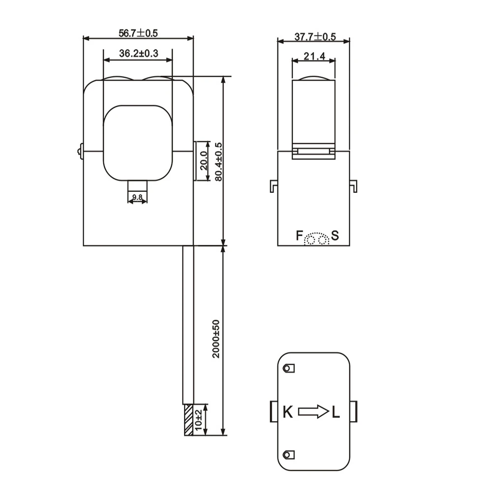 Диапазон KCT трансформаторов тока с разделенным сердечником был специально разработан, чтобы быть небольшим CT и легко открыть, а также поддерживать точность, необходимую для кВт/ч счетчики. Преимущество трансформатора тока с разделенным сердечником заключается в том, что его можно легко и без беспокойства и отключения основных кабелей, которые он контролирует. Диапазон KCT трансформаторов тока имеет две изолированные клеммные крышки для подключения кабелей S1 и S2, которые блокируют вниз над клеммными винтами, полностью изолируя соединения. Это делает его идеальным для использования кабельных молотков autumpers, которые имеют цветовую кодировку и индивидуально пронумерованы на каждом проводнике, обеспечивая простое и легкое подключение от трансформатора тока к счетчику электроэнергии. Особенности: 1: конструкция самоблокирующейся, безопасной, простой в установке, портативной 2: широкое внутреннее окно, позволяющее зажимать большие кабели или шины 3: широкий диапазон размеров для размещения всех существующих установок 4: изолированный пластиковый чехол, признанный в соответствии с UL94-V0 Электрические параметры: 1) Модель: KCT-36 2) коэффициент тока: 300A/100mA, 400A/40mA, 500A/50mA, 600A/60mA и так далее 3) Макс. Входной ток: 120% от номинального первичного тока 4) Класс: 0,5 или 1,0 5) Коэффициент поворота: 2500:1 или 3000:1 или 5000:1 6) Уровень защиты: 7.5V0-P 7) Категория изоляции: CATIII 8) рабочее состояние: -20 ℃ ~ + 50 ℃, ≤ 85% RH, без конденсации, IN-) дом и любое направление установки 9) состояние хранения: -30 ℃ ~ + 50 ℃, ≤ 85% RH, без конденсации