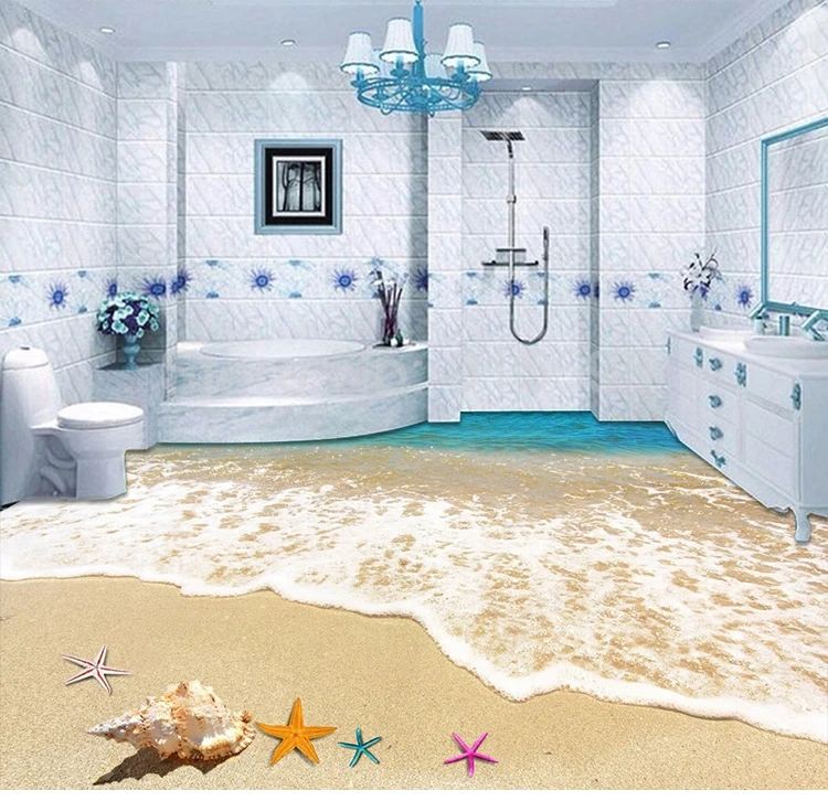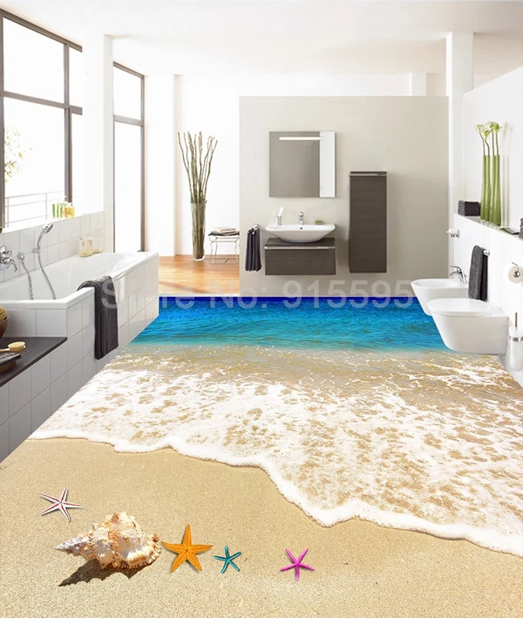 Фотообои на заказ, 3D корпус для песочного пляжа, морская звезда, гостиная, напольная наклейка для ванной, водонепроницаемые самоклеящиеся обои