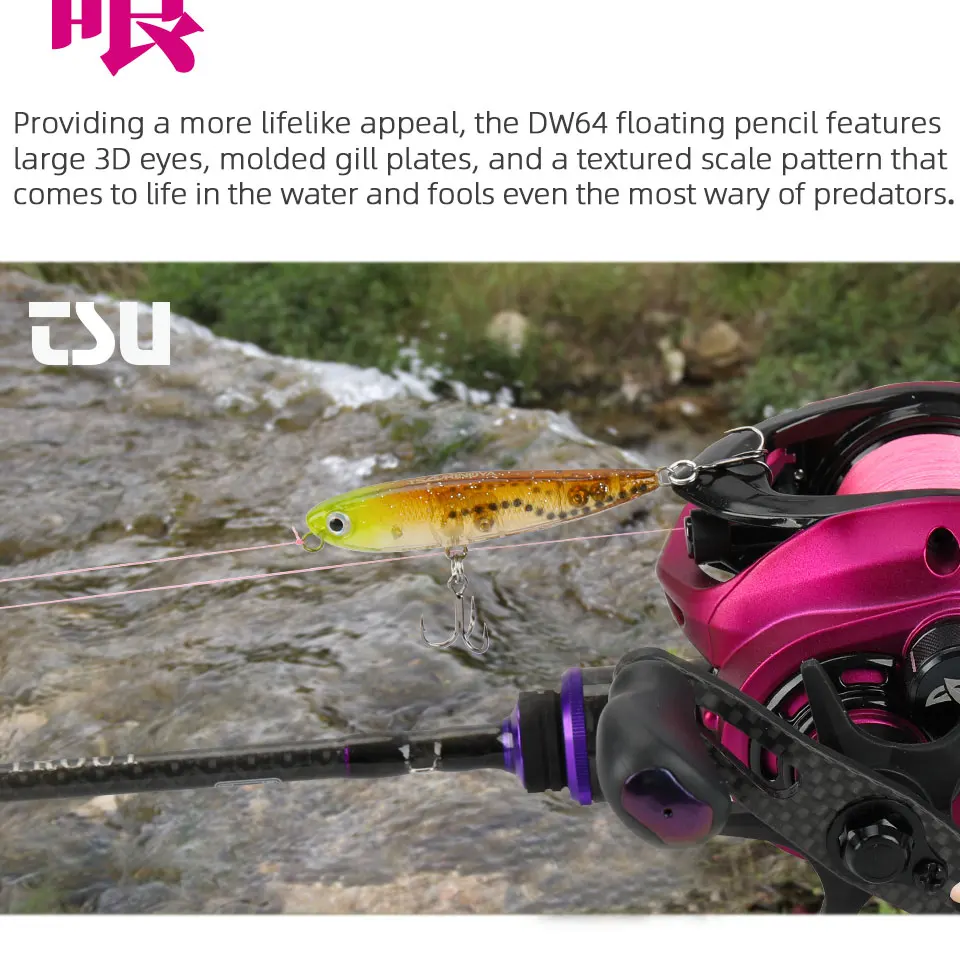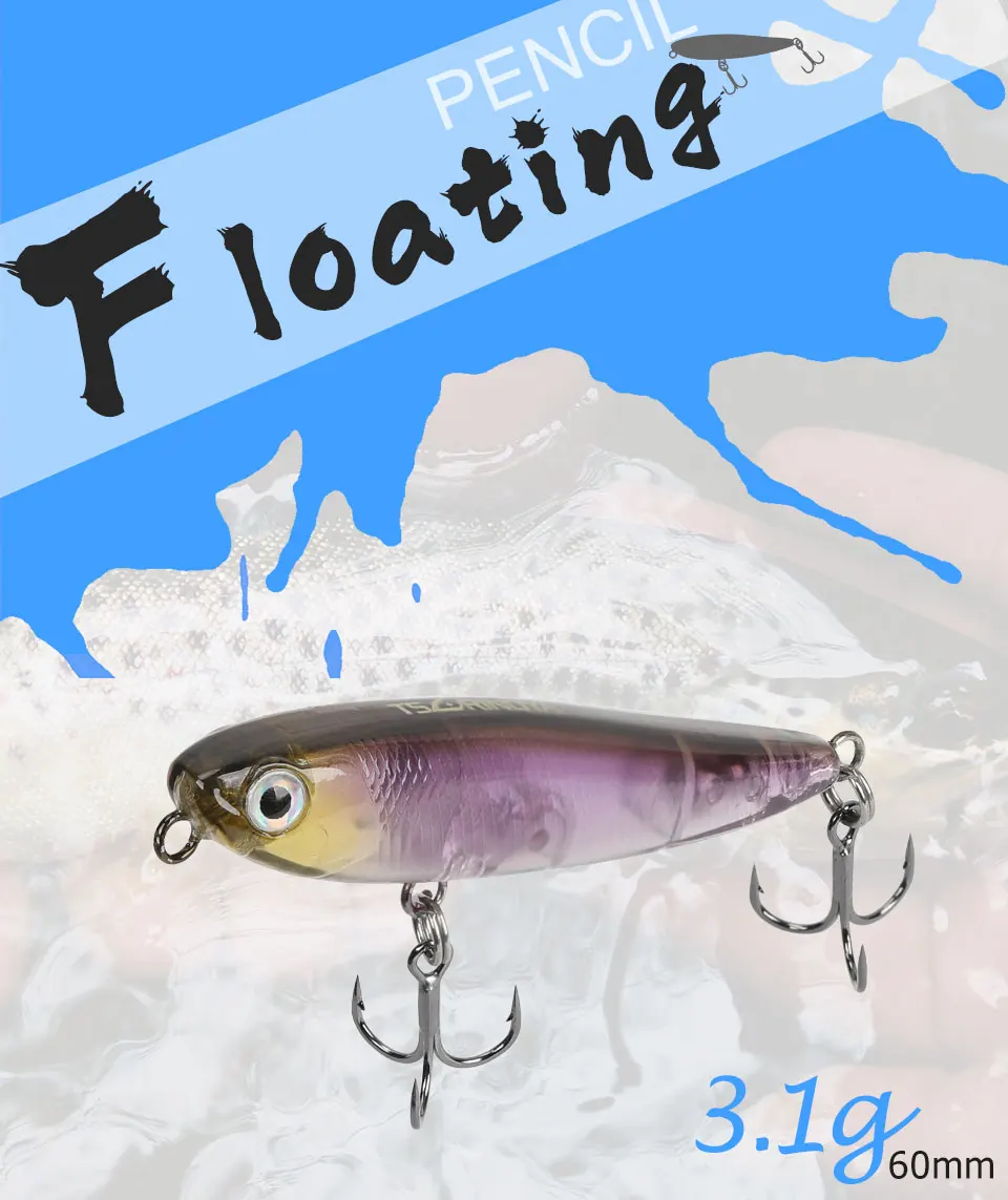 TSURINOYA DW64 плавающий карандаш 60F жесткая приманка 60 мм 3,1 г Topwater жесткая рыболовная приманка мини плавающий карандаш для собак искусственная приманка