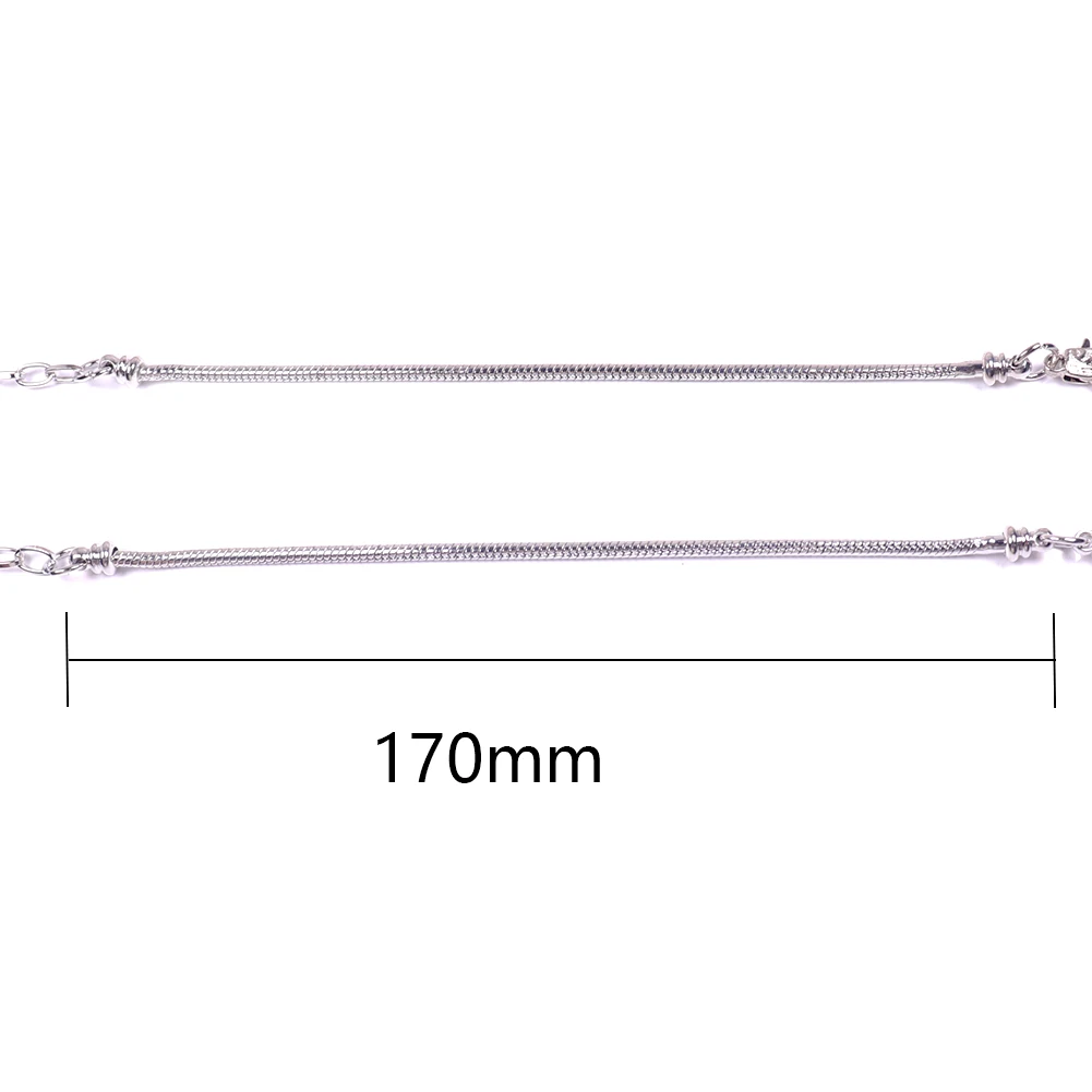 Цена: 1 шт. Материал: медь, белый, посеребренный Размер: 170 мм, 180 мм, 190 мм Длина составляет около 16 см цепочка + 5 см регулируемая цепочка, совместимая со всеми стандартными брендами браслетов и ожерелий, европейские бусы и подвески, подходящие для всех основных брендов очаровательных бусин: biagi,zable: 170180190 такие как: Biagi, Zable и все европейские бусины