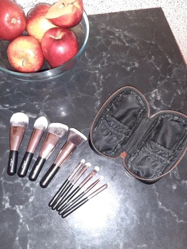 Получила посылку быстро. Очень ее ждала. Упаковано отлично, но. Чехол пошит качественно но , то с чего его пошли, рассыпается прямо в руках, какой-то старый кожзам и запах не приятный. Да и сами кисти не очень качественно сделаны. Больше ещё ничего, а вот маленькие совсем ерунда. Может голубой набор лучше сделан, но сомневаюсь. Вообщем-то денег своих он не стоит. Преимущества, размер удобен для косметики. Буду пользоваться скорее всего только большими кистями. Жаль что так.