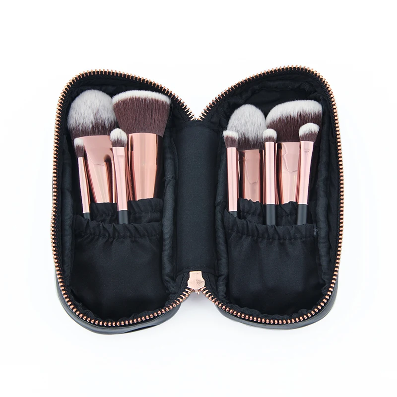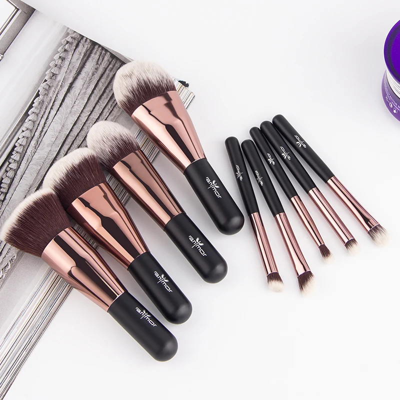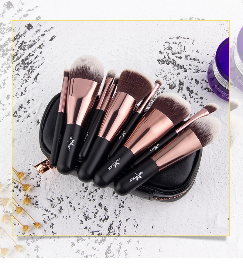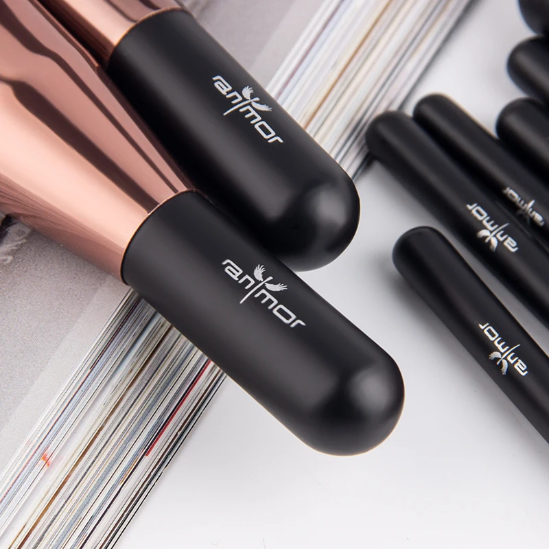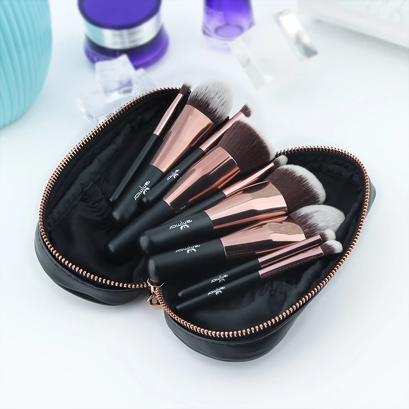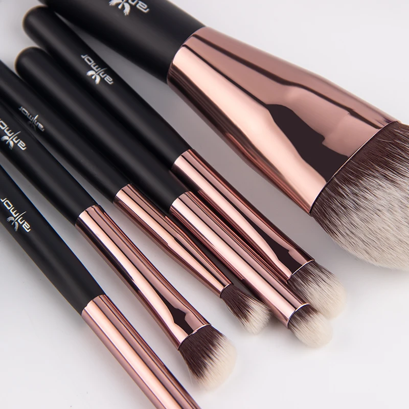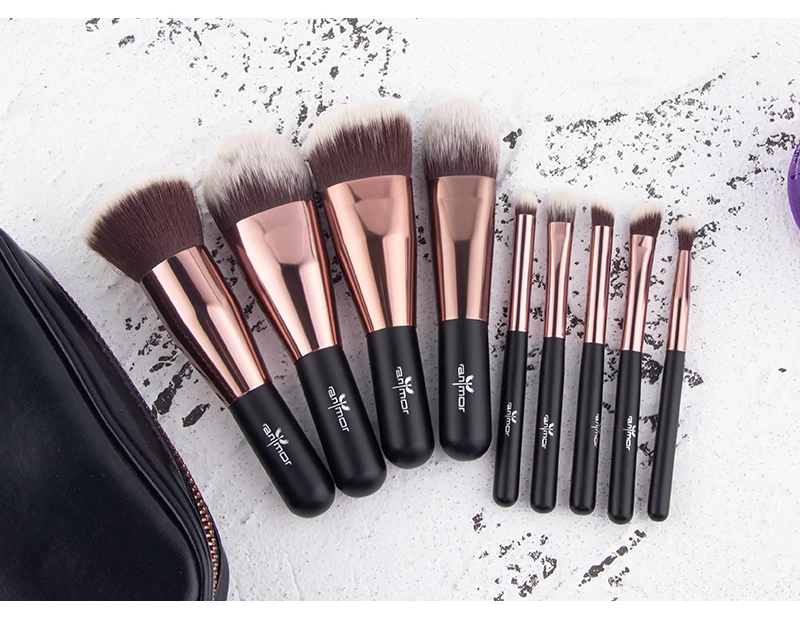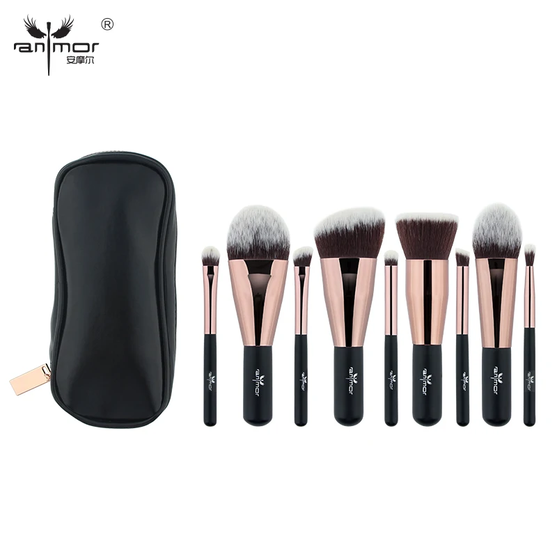 Anmor 9 шт. набор кистей для макияжа с сумкой, синтетические волосы, деревянная Кисть для макияжа лица, пудра, основа для макияжа, тени для век, инструменты для смешивания