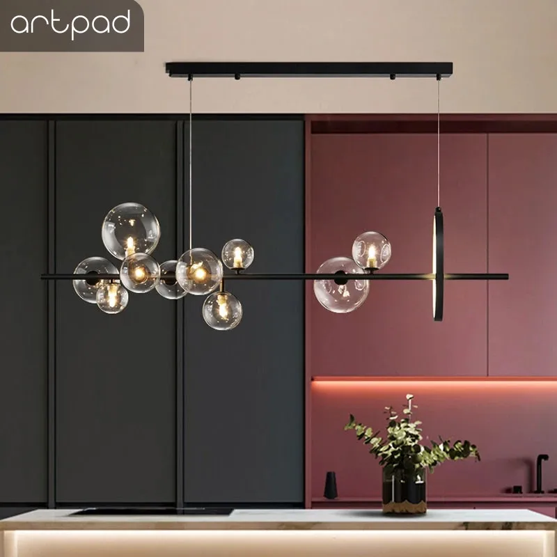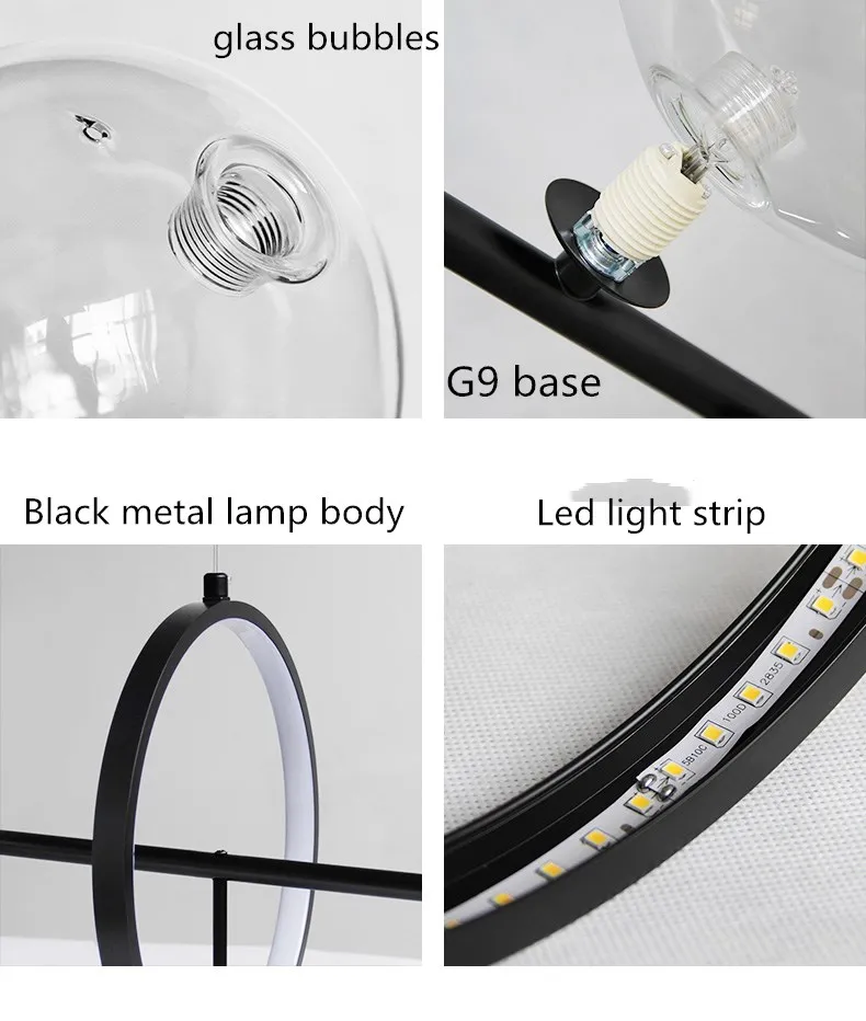 Современная светодиодная потолочная люстра для столовой, гостиной, кольцевой подвесной светильник, стеклянные пузырьки G9, розетки, домашние светильники