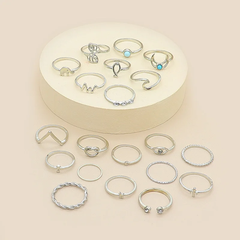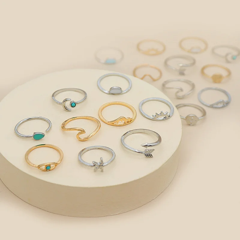 Кольцо женское, золотистоесеребристое, 22 вида, комплект старинных колец