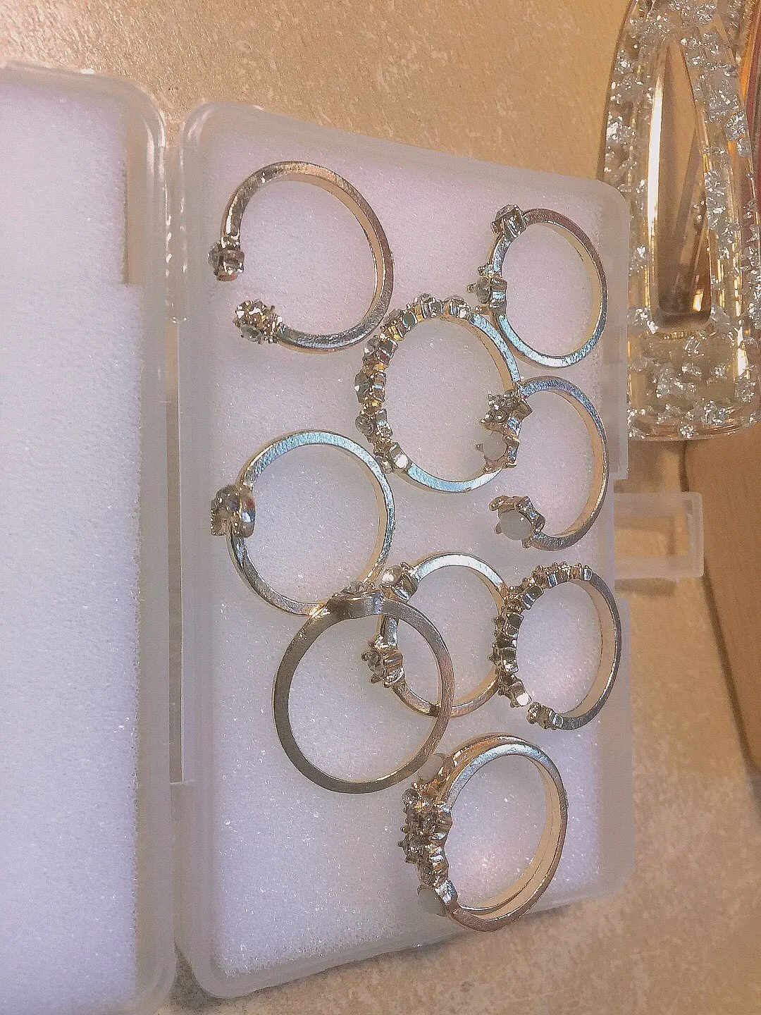 Кольца появились через два месяца, они выглядят красиво, но некоторые из них выглядят дешевле, чем на картинке, но я доволен, потому что вы получаете 17 колец по такой низкой цене.