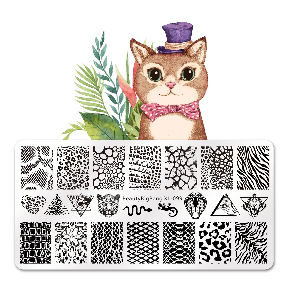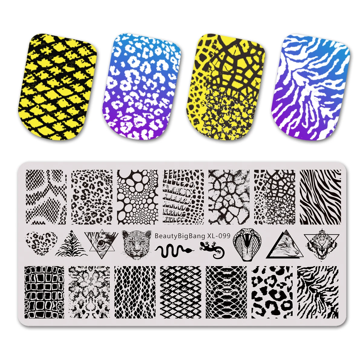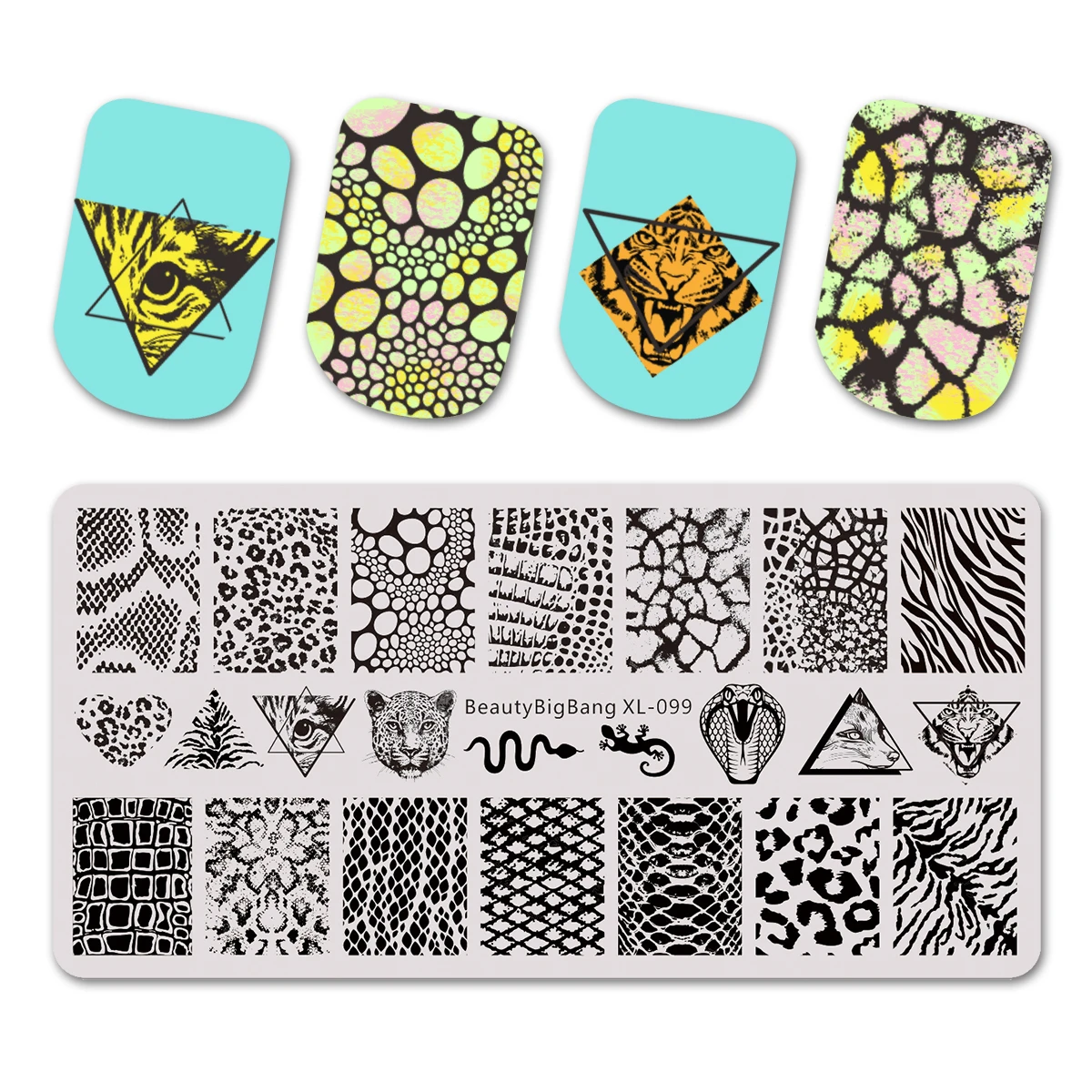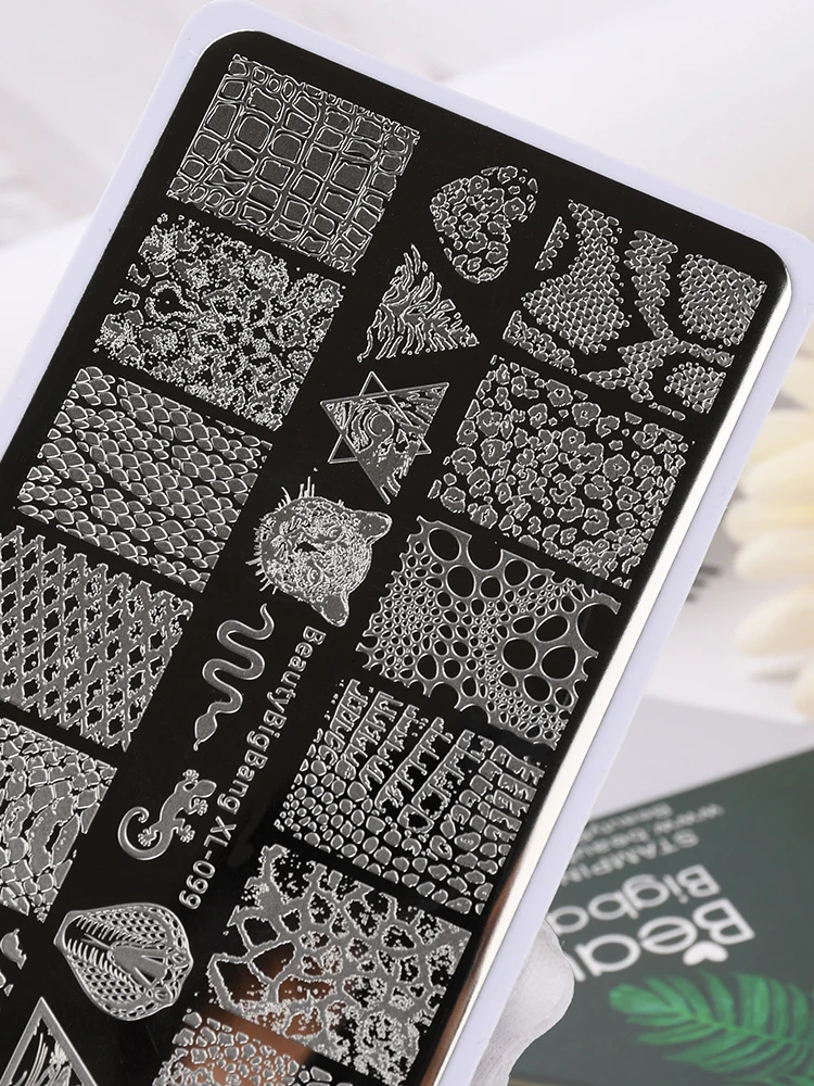 Прямоугольная шаблон штамповочной пластины для ногтей из нержавеющей стали с леопардовым принтом, змеиным животным