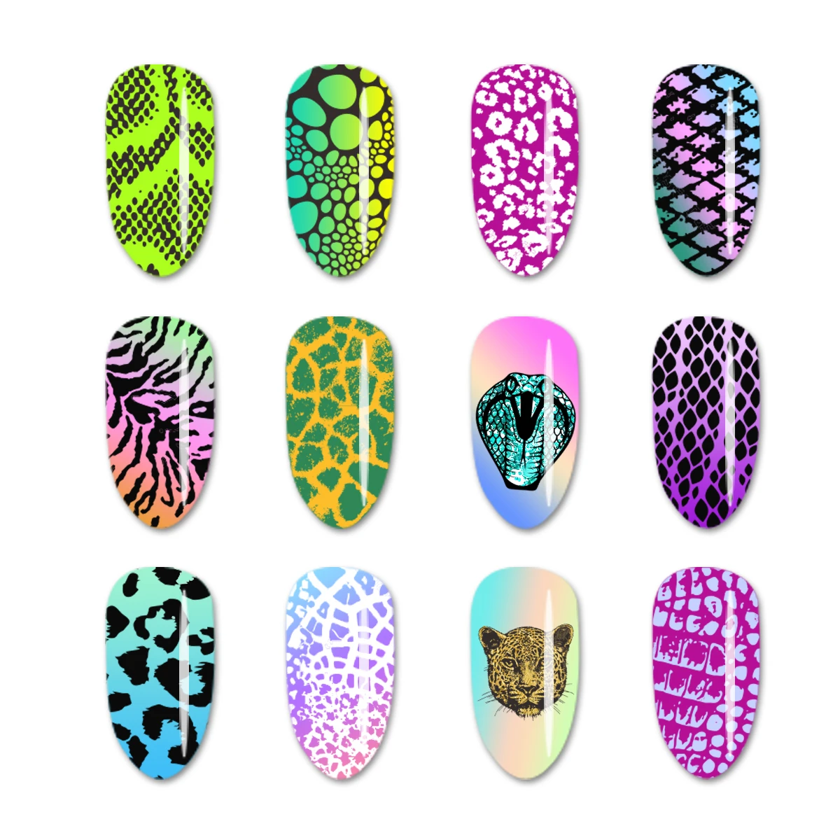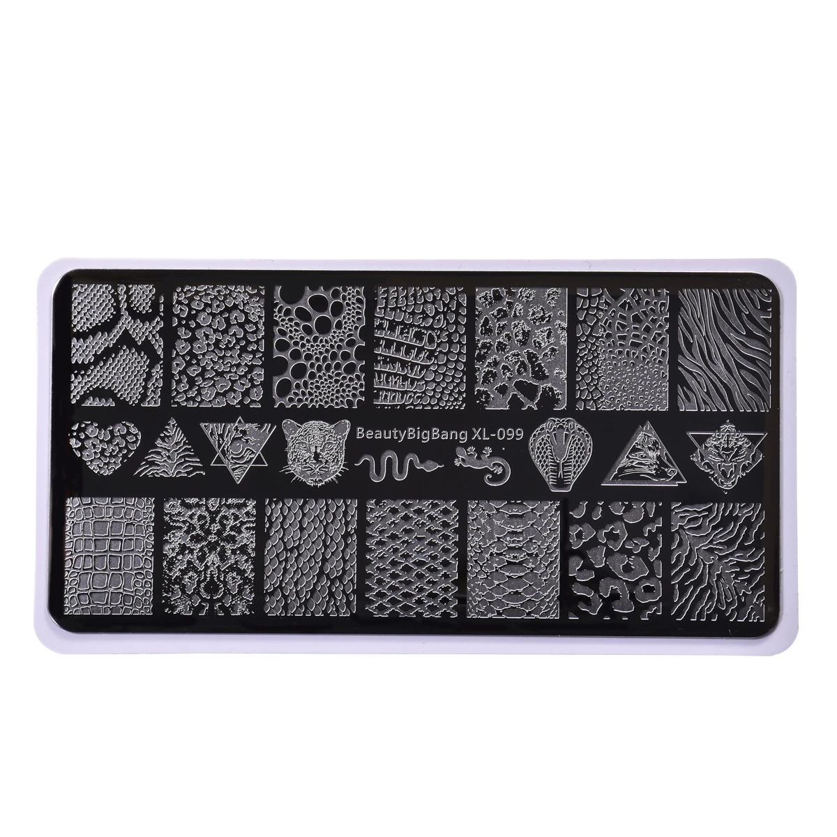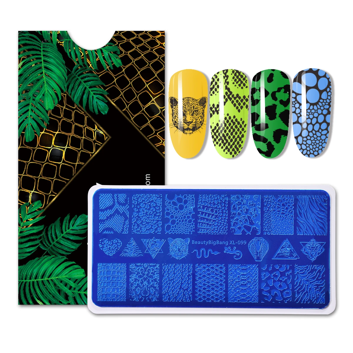Прямоугольная шаблон штамповочной пластины для ногтей из нержавеющей стали с леопардовым принтом, змеиным животным