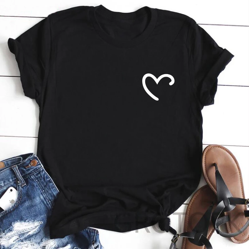 Футболка ZOGANKIN Женская хлопковая, рубашка в стиле Харадзюку, с принтом сердца, модная одежда черного цвета, на лето
