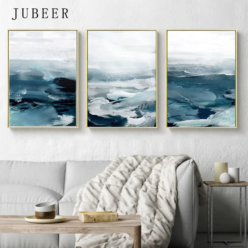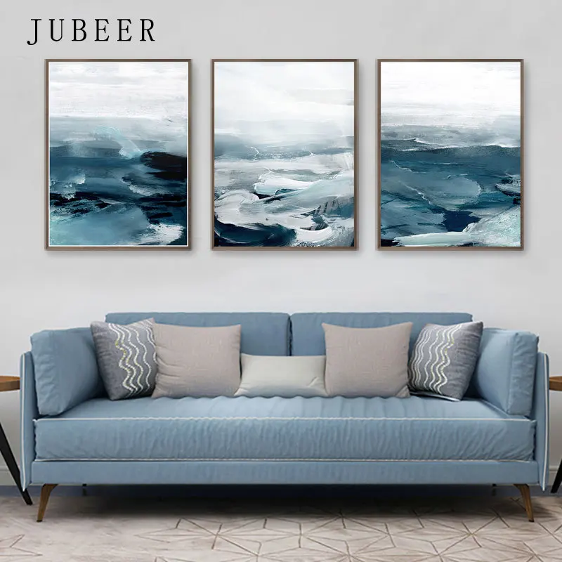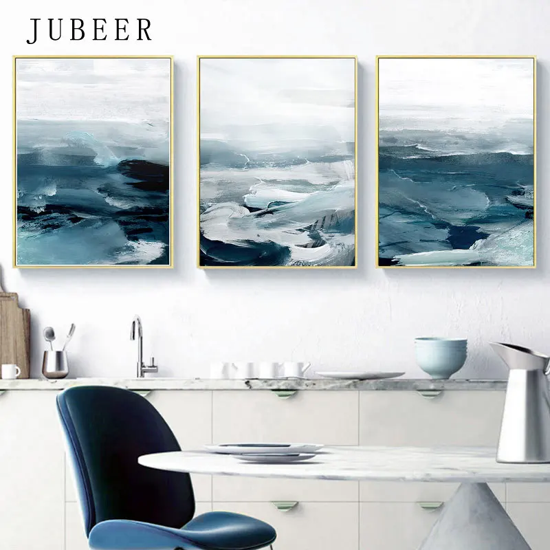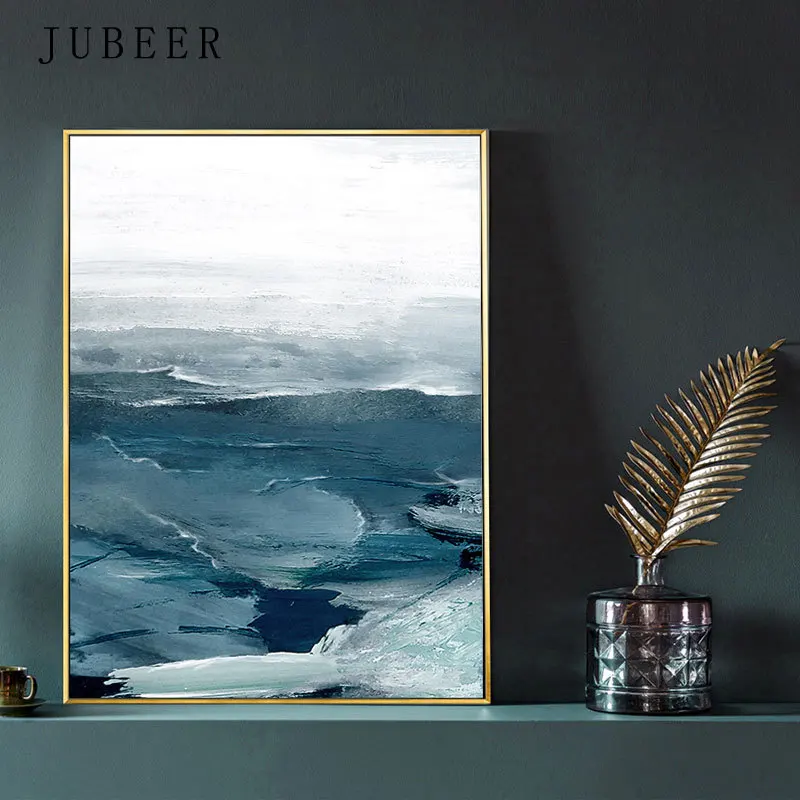 Современный синий морской холст с принтом, постер, без рамки, насте...