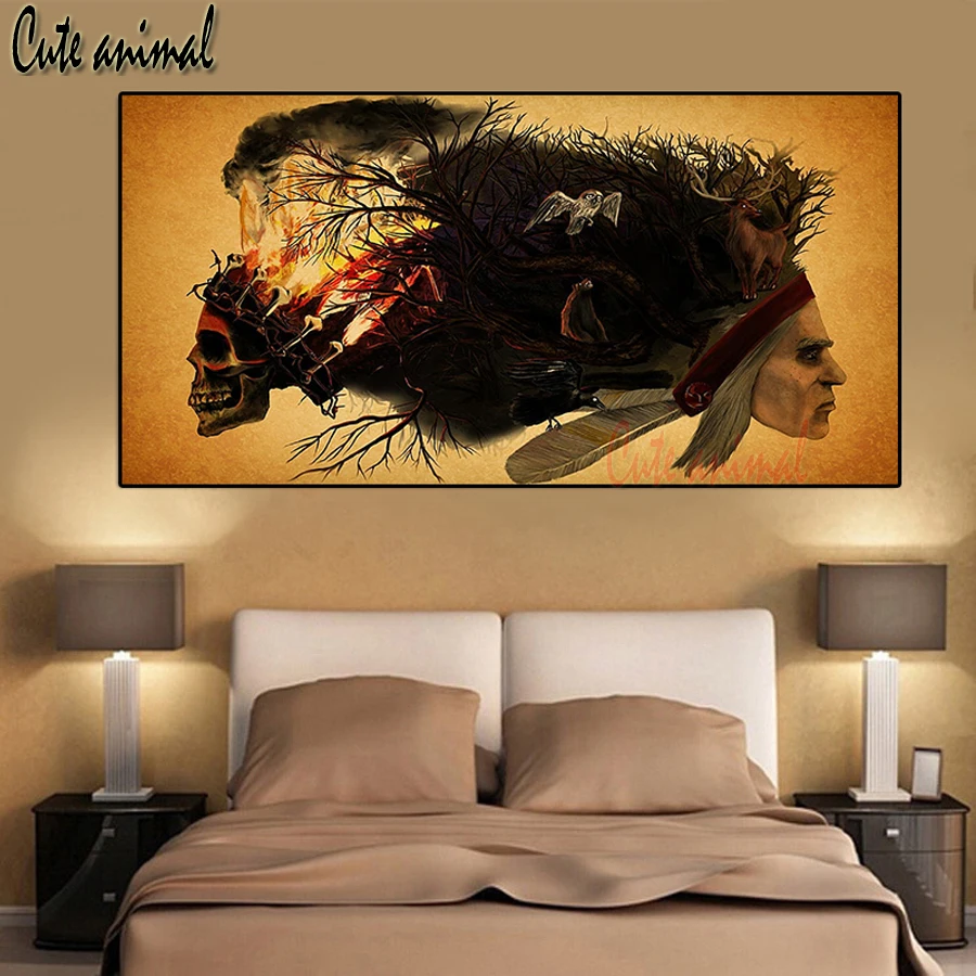 5D алмазная картина сделай сам, индийский череп с перьями, цифровая картина, алмазная вышивка, инкрустированная крестиком, круглая, квадратная