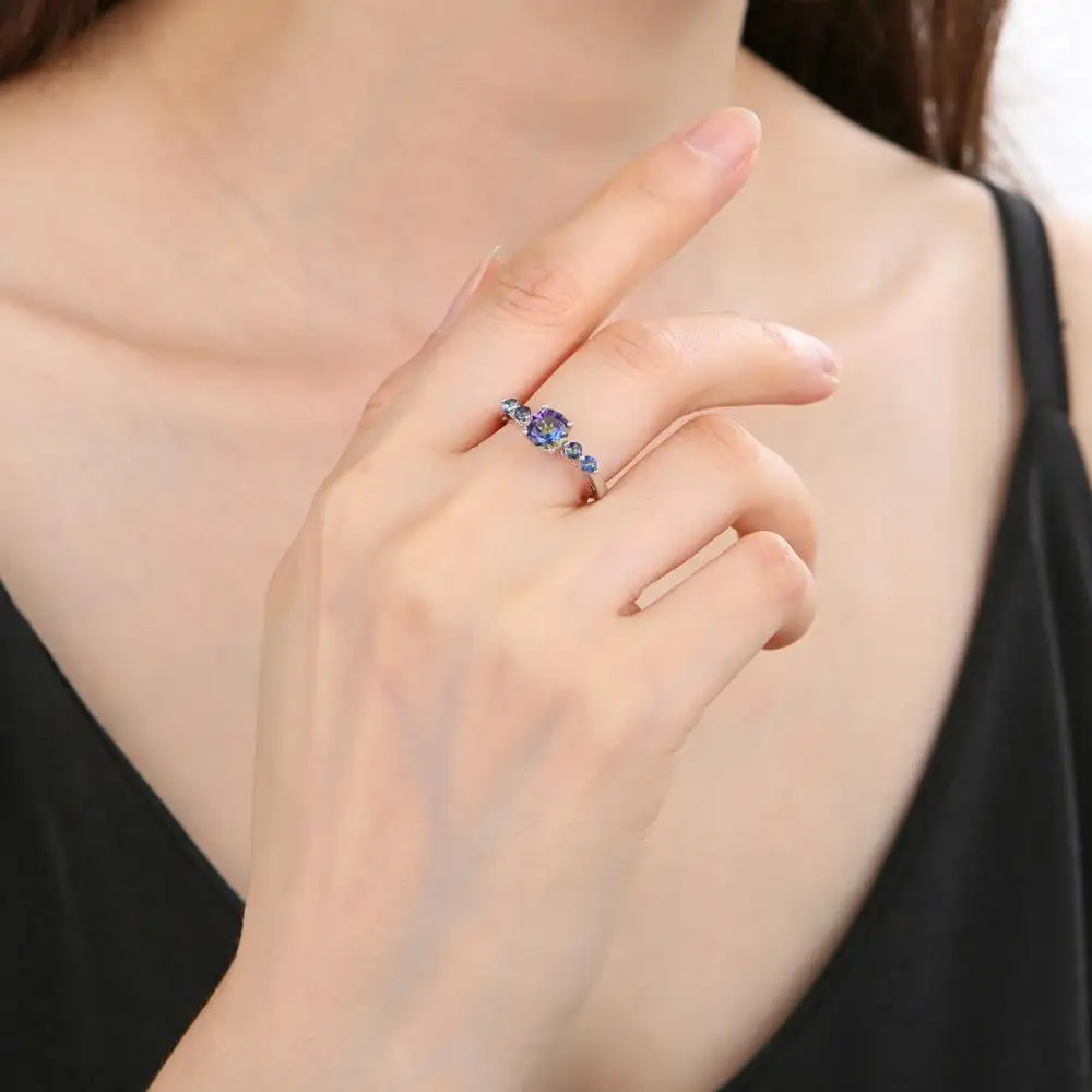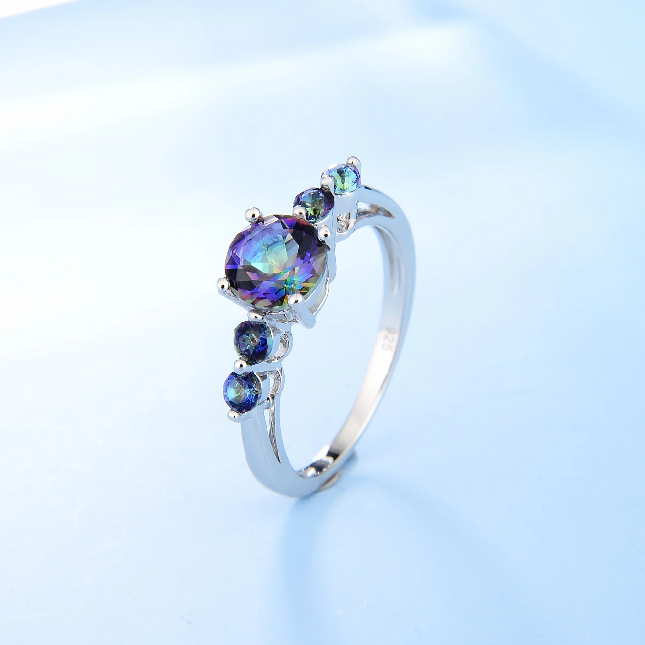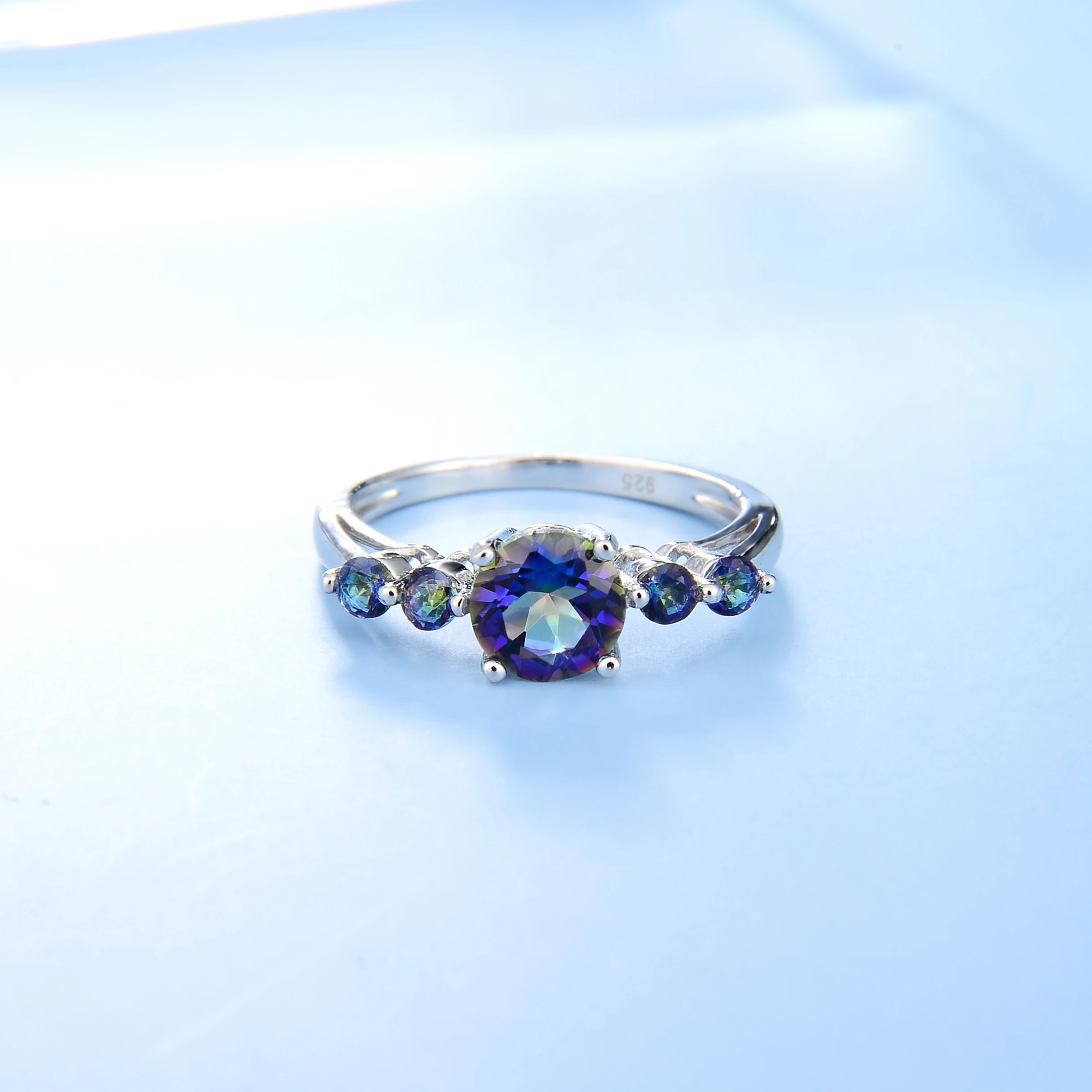 Женское кольцо из серебра 925 пробы с натуральным мистическим топазом, обручальное кольцо с тремя камнями по месяцу рождения