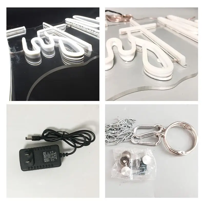 1. Акрил: обладает хорошей прочностью, светильник весом, долговечностью, не легко повредить, прозрачные материалы делают неоновый светильник s более красивым